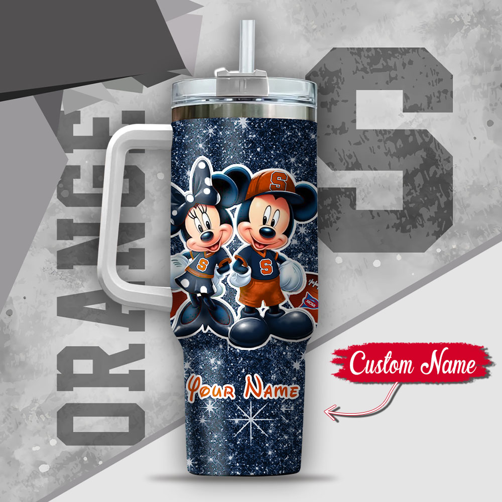 Ncaa Syracuse Orange Mickey And Minnie Couple Custom Stanley Quencher 40Oz Stainless Steel Tumbler With Handle