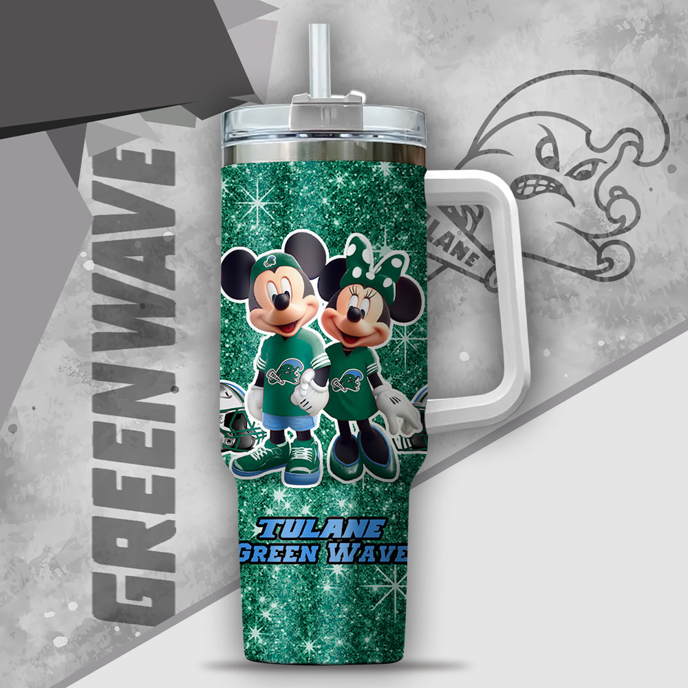 Ncaa Tulane Green Wave Mickey And Minnie Couple Custom Stanley Quencher 40Oz Stainless Steel Tumbler With Handle