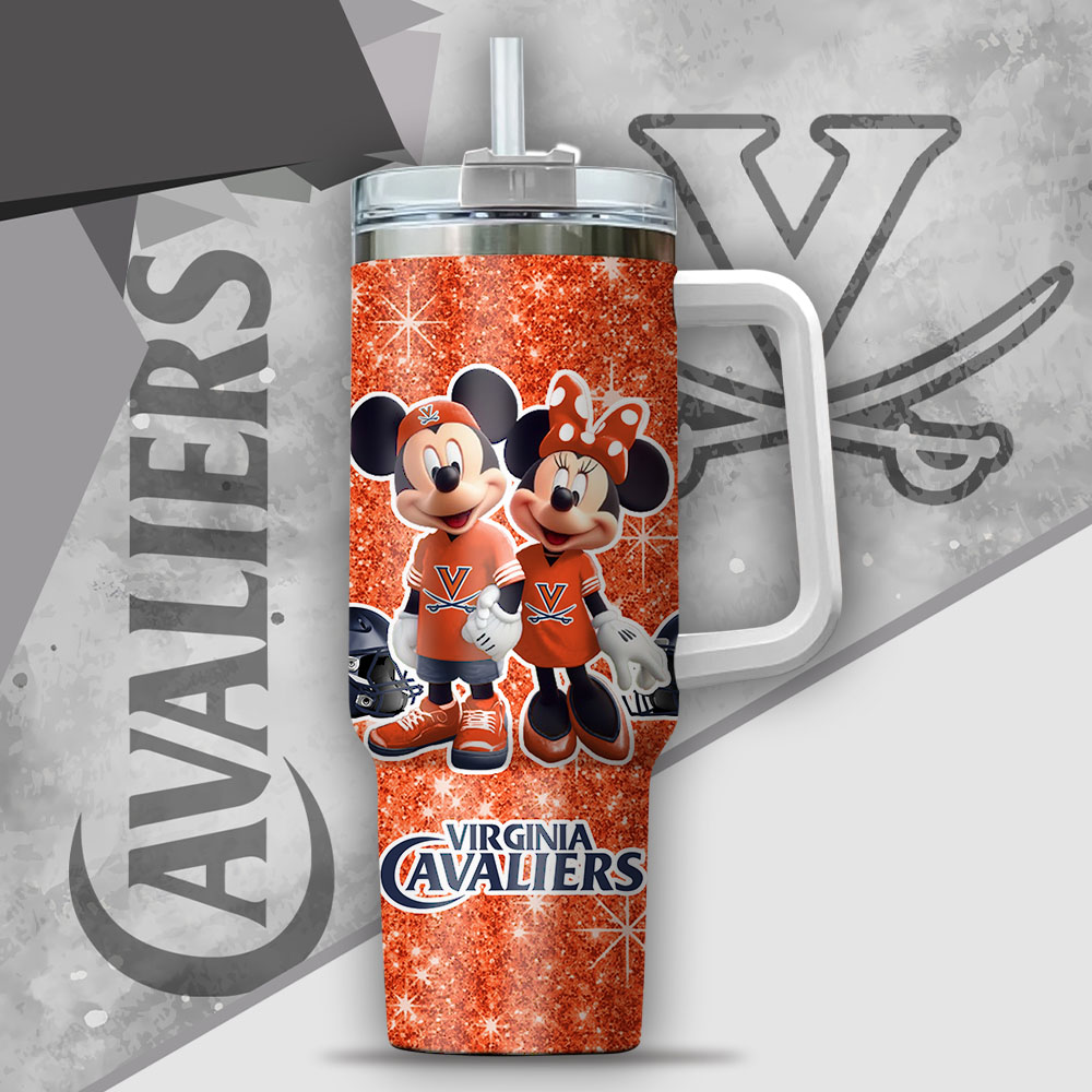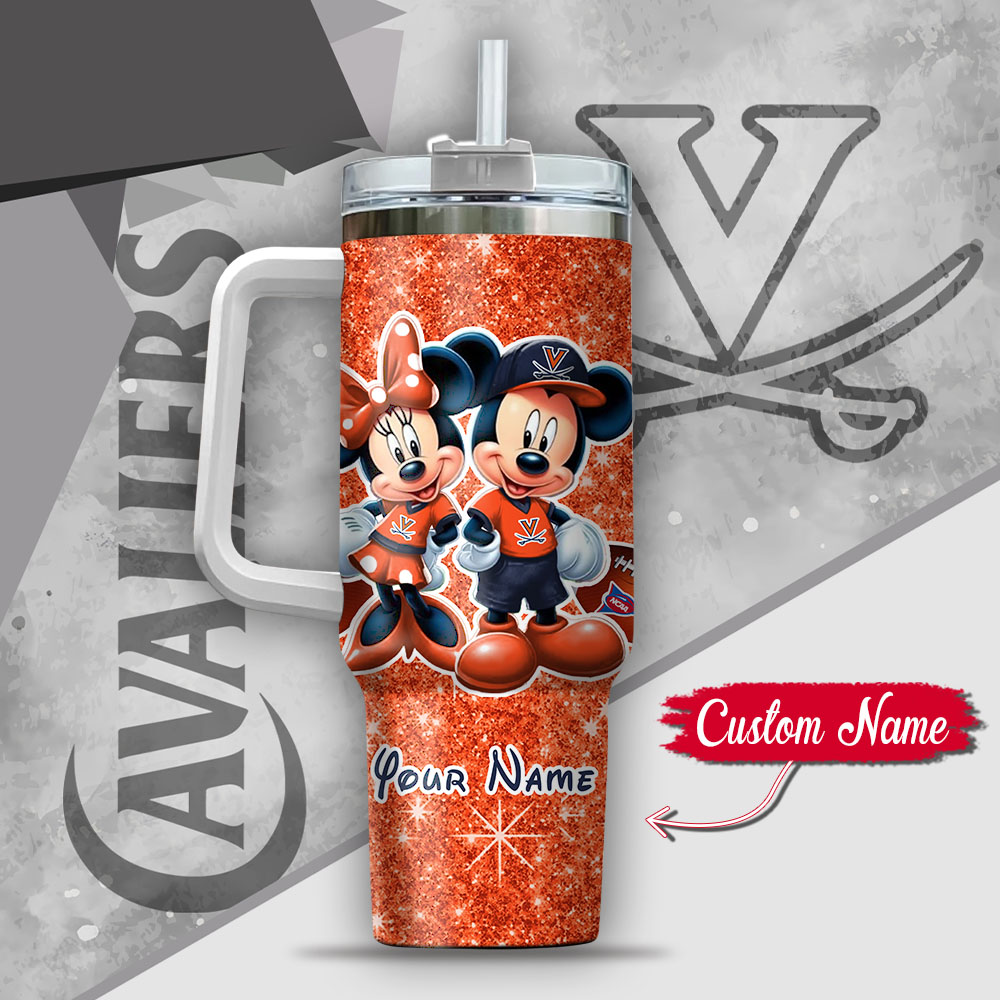 Ncaa Virginia Cavaliers Mickey And Minnie Couple Custom Stanley Quencher 40Oz Stainless Steel Tumbler With Handle