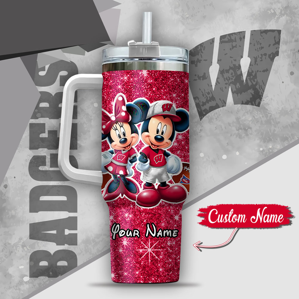 Ncaa Wisconsin Badgers Mickey And Minnie Couple Custom Stanley Quencher 40Oz Stainless Steel Tumbler With Handle
