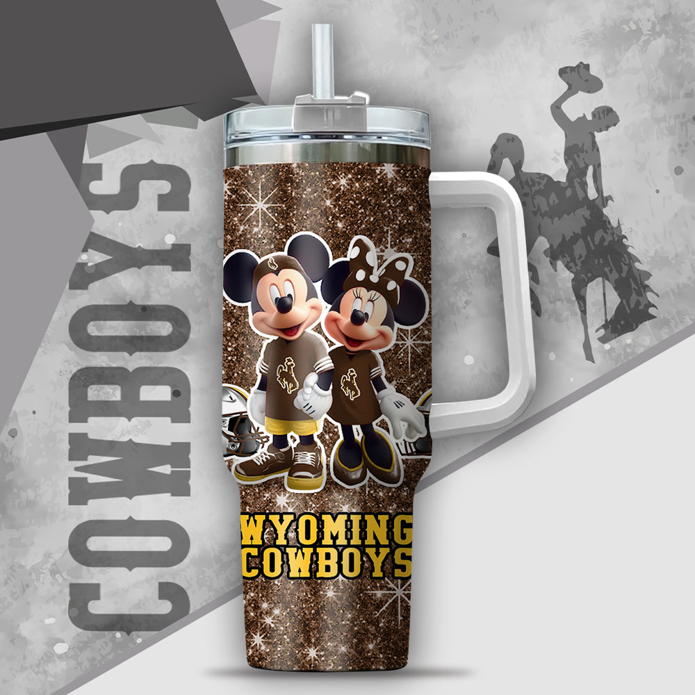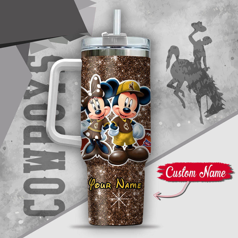 Ncaa Wyoming Cowboys Mickey And Minnie Couple Custom Stanley Quencher 40Oz Stainless Steel Tumbler With Handle