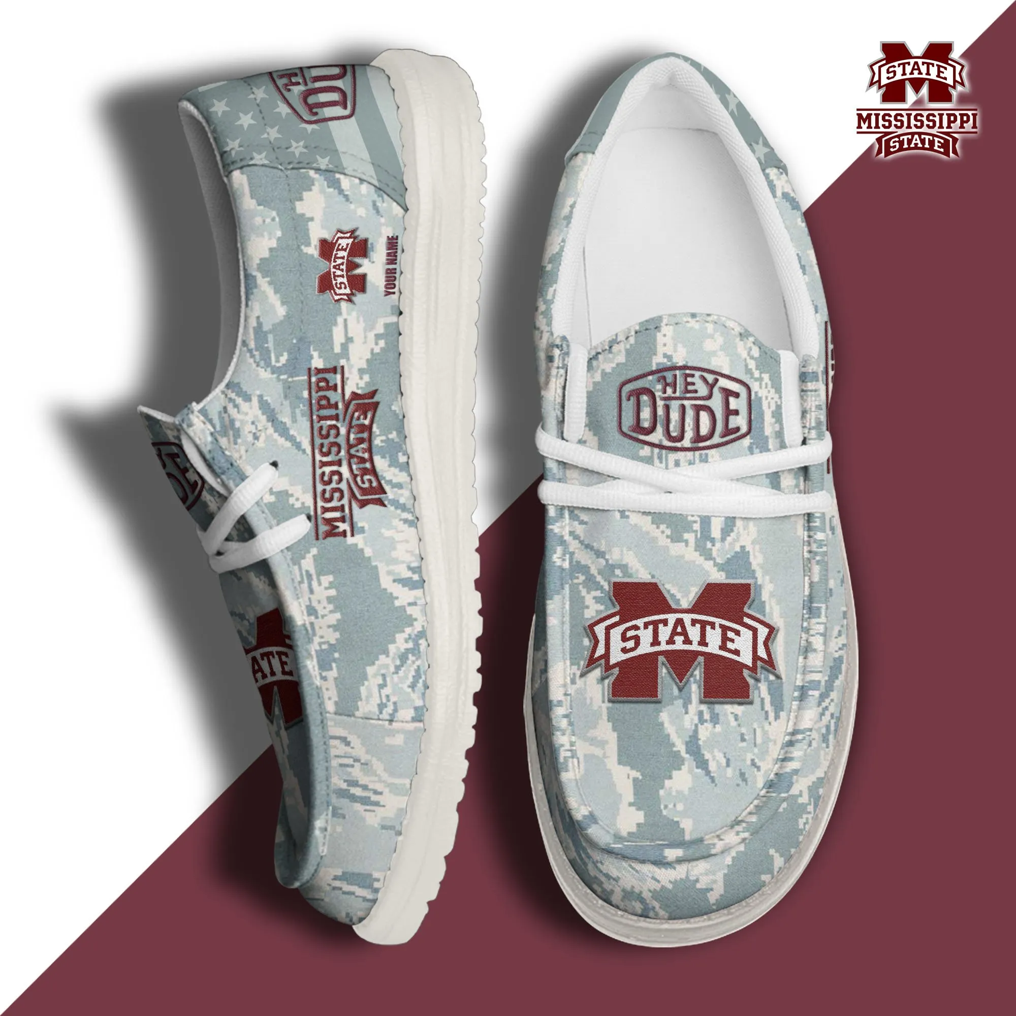 Nebraska Cornhuskers 3D Print Dude Shoes Camo Blue Grey For Men Women