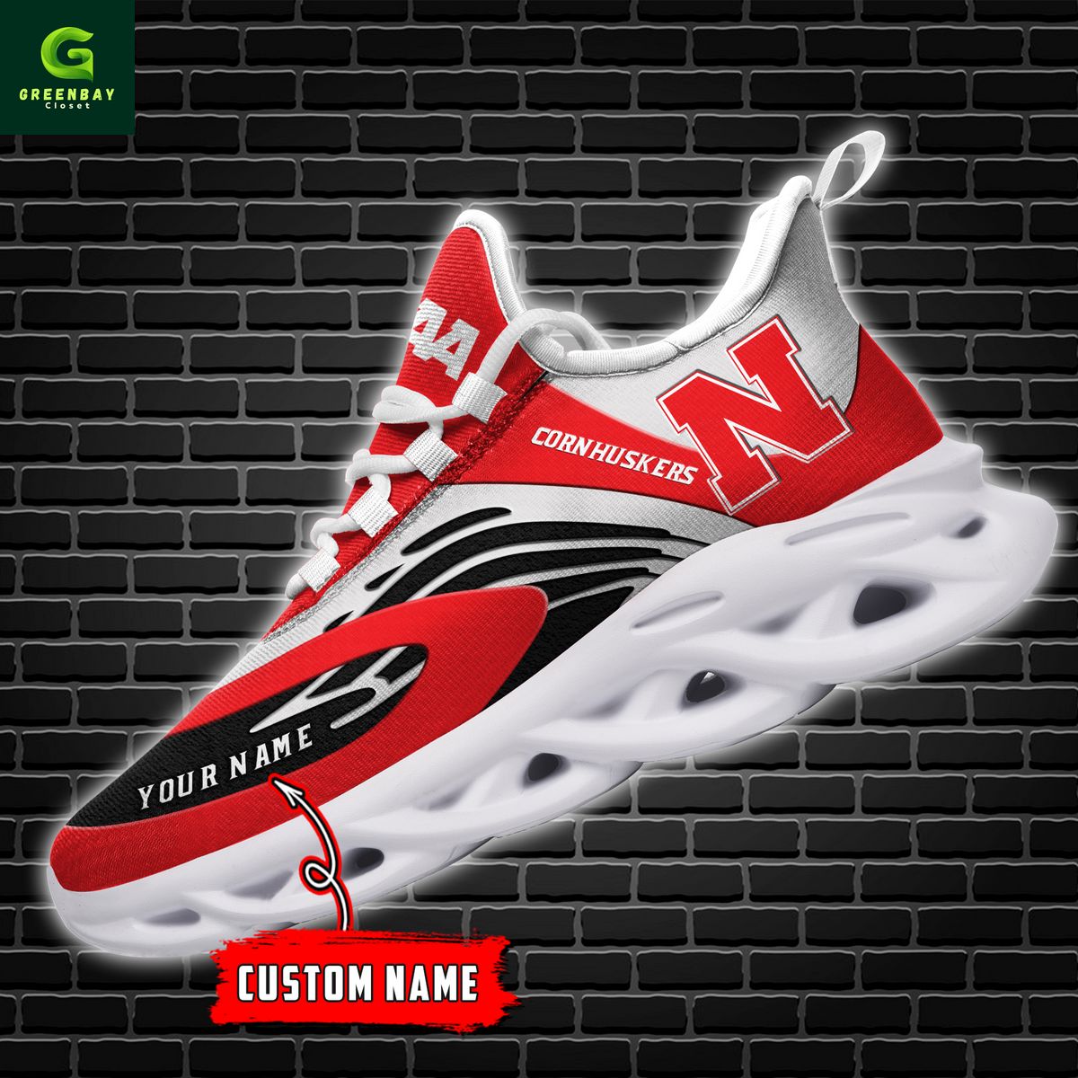 Nebraska Cornhuskers Max Soul Shoes Sneakers Printed White And Black Sole For Men And Women