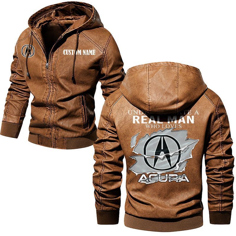 Never Underestimate A Real Man Who Loves Acura Leather Hoodie Jacket
