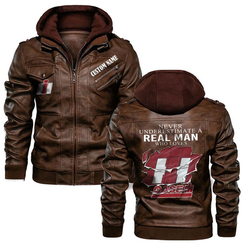 Never Underestimate A Real Man Who Loves Case IH Hooded Leather Jacket