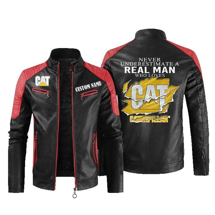 Never Underestimate A Real Man Who Loves Caterpillar Inc Leather Biker Jacket