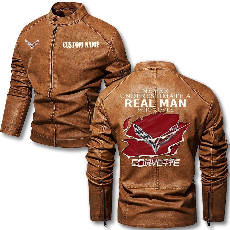 Never Underestimate A Real Man Who Loves Chevrolet Corvette Motorcycle Leather Jacket