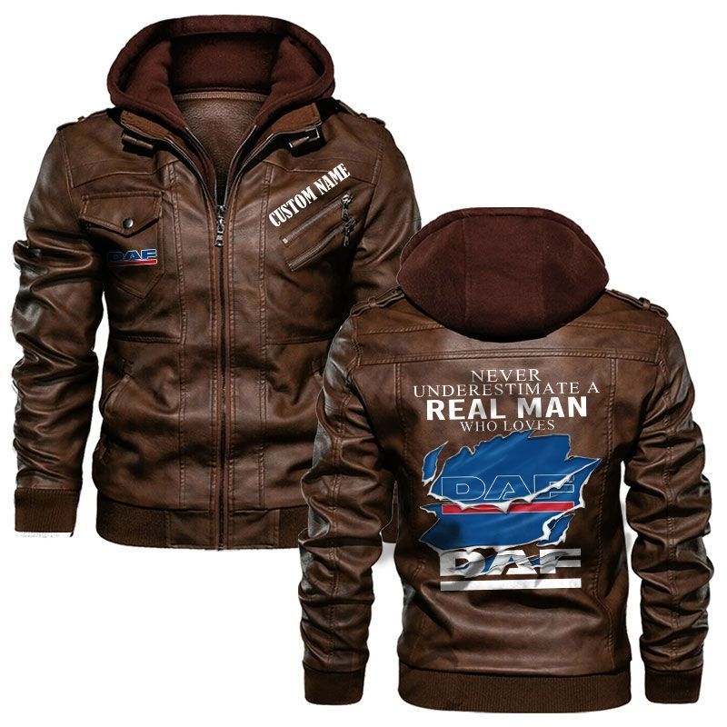 Never Underestimate A Real Man Who Loves Daf Hooded Leather Jacket