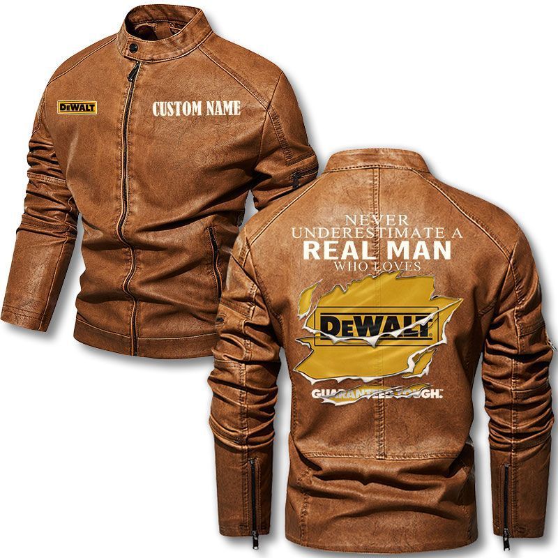 Never Underestimate A Real Man Who Loves DeWalt Motorcycle Leather Jacket
