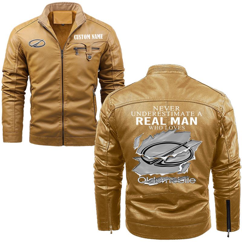Never Underestimate A Real Man Who Loves Oldsmobile Zip Pocket Fleece Leather Jacket