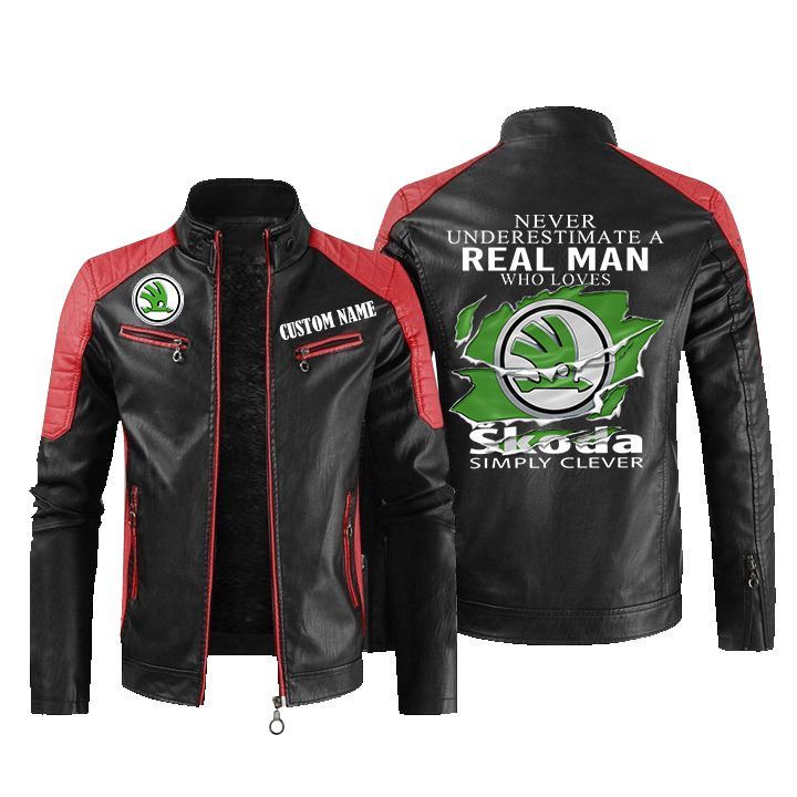 Never Underestimate A Real Man Who Loves Skoda Leather Biker Jacket