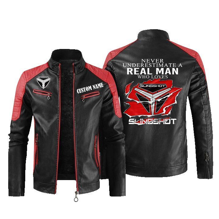 Never Underestimate A Real Man Who Loves Slingshort Leather Biker Jacket