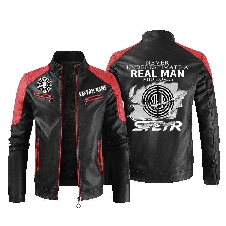 Never Underestimate A Real Man Who Loves Steyr Tractor Leather Biker Jacket