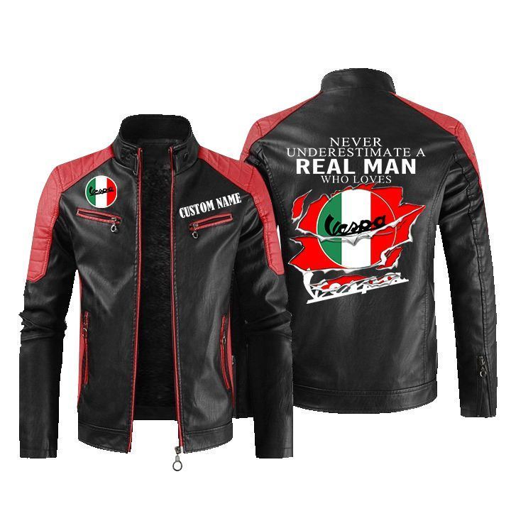 Never Underestimate A Real Man Who Loves Vespa Leather Biker Jacket
