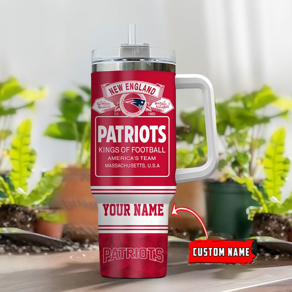 New England Patriots Nfl Bud Light Custom Stanley Quencher 40Oz Stainless Steel Tumbler With Handle