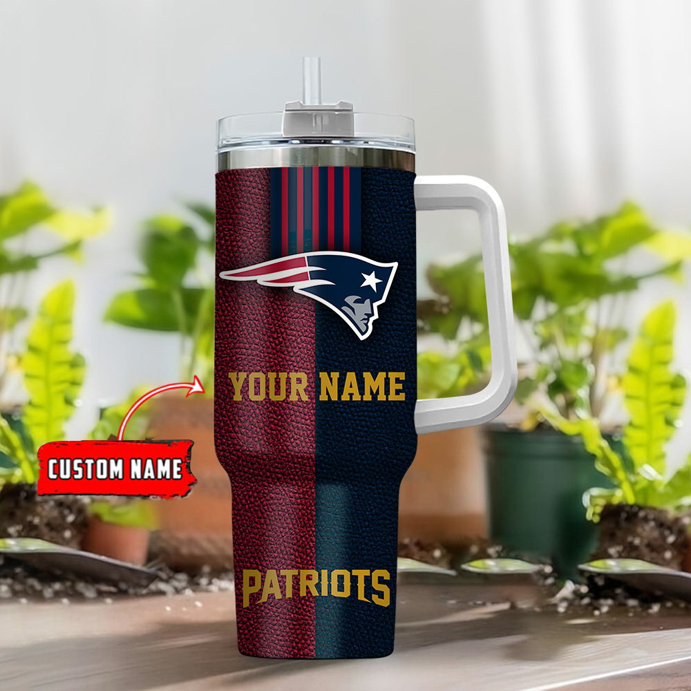 New England Patriots Nfl Leather Effect Custom Stanley Quencher 40Oz Stainless Steel Tumbler With Handle