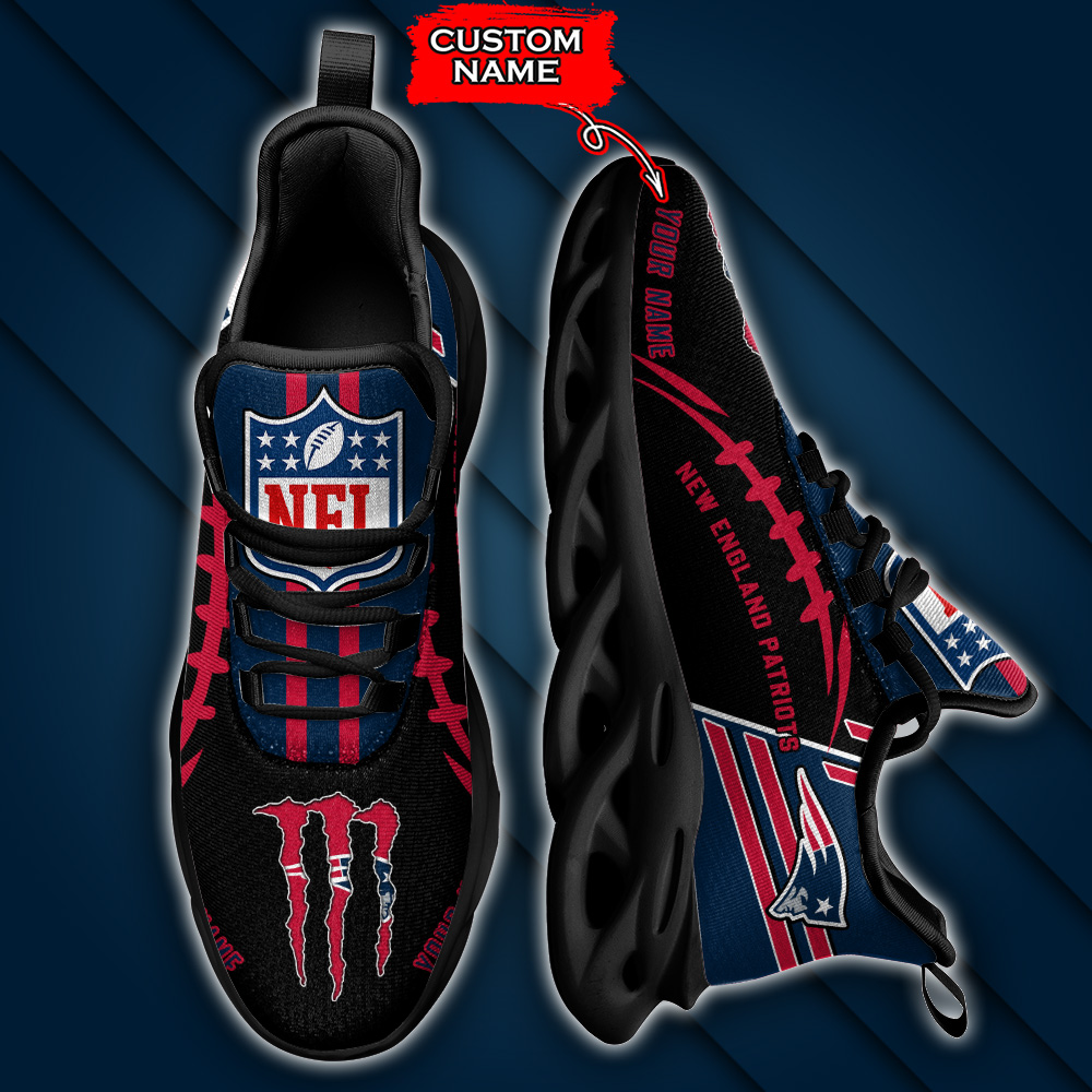 New England Patriots NFL Max Soul Shoes Sneakers Printed White And Black Sole For Men And Women