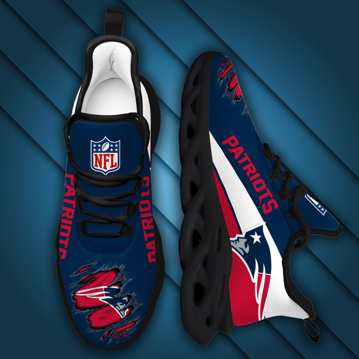 New England Patriots NFL Max Soul Shoes Sneakers Printed White And Black Sole For Men And Women