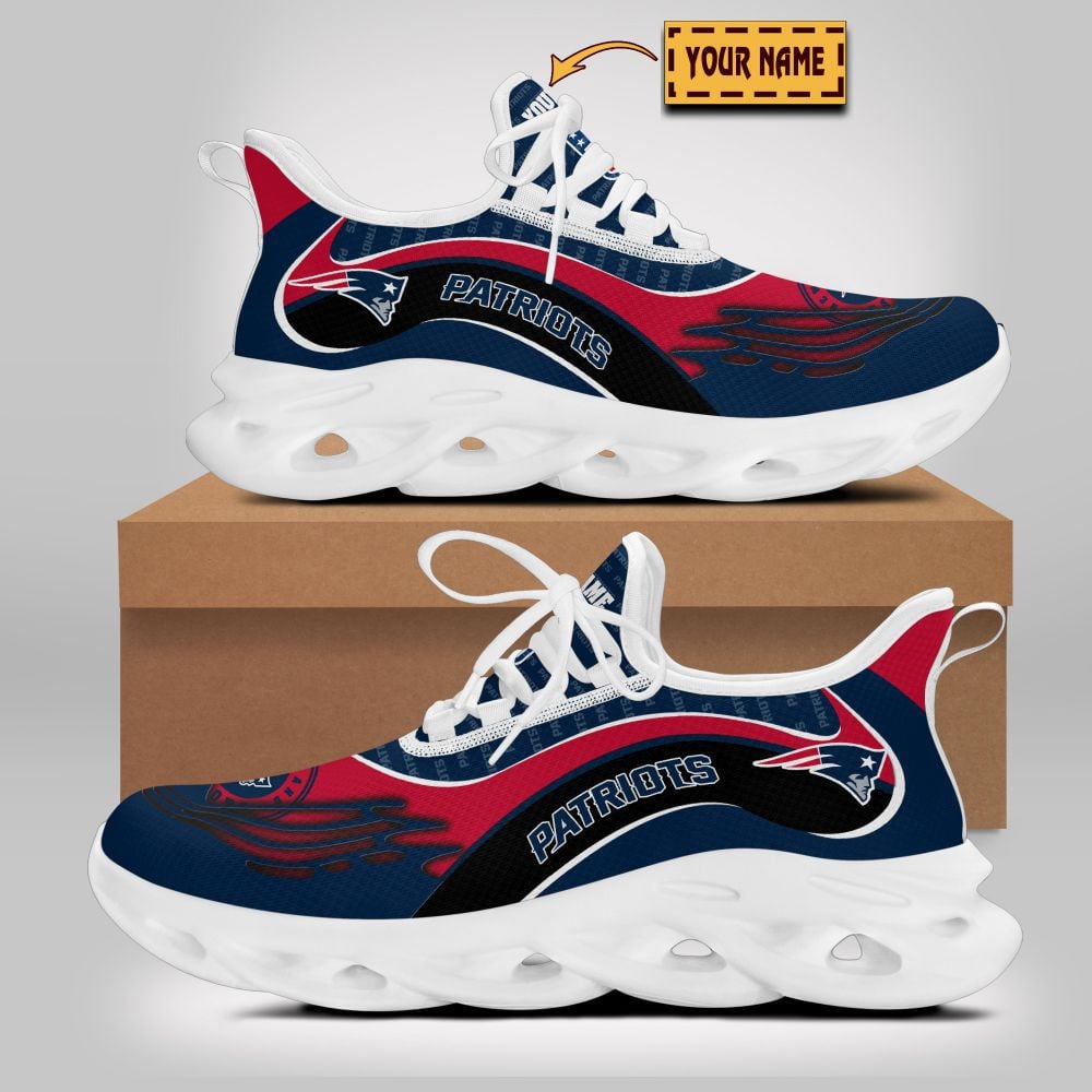 New England Patriots NFL Max Soul Shoes Sneakers Printed White And Black Sole For Men And Women