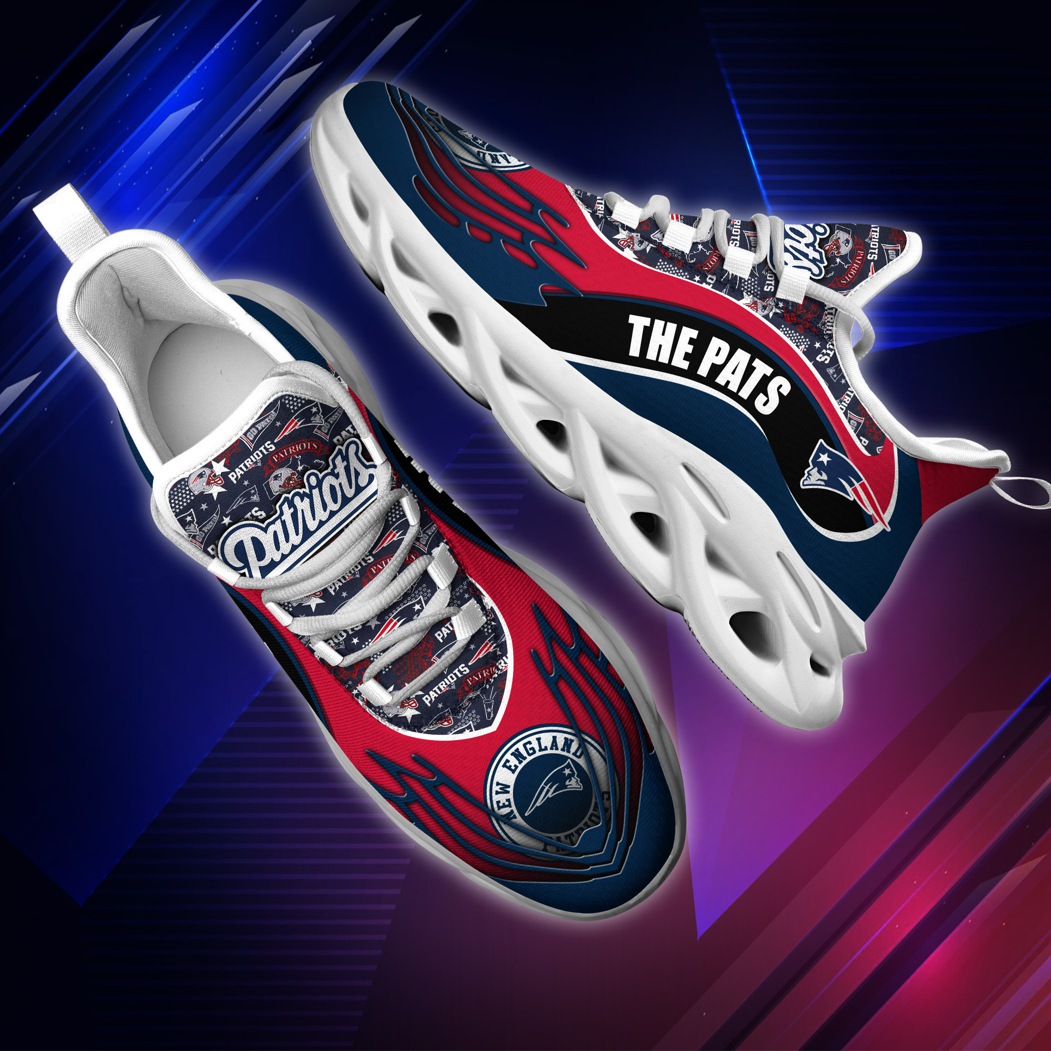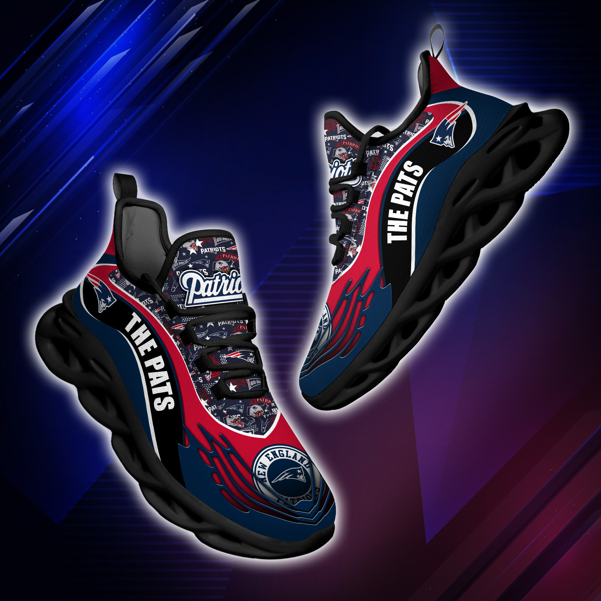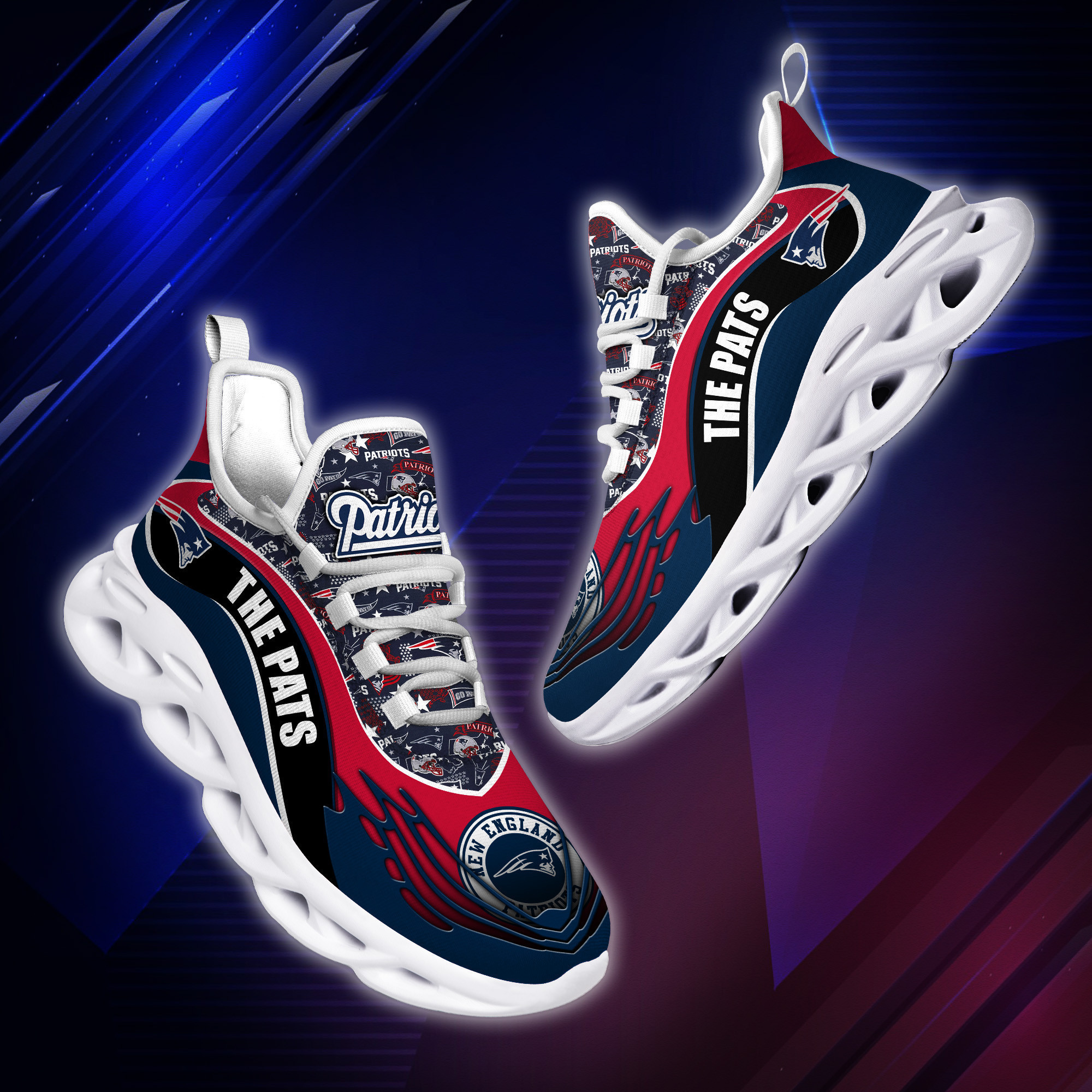 New England Patriots NFL Max Soul Shoes Sneakers Printed White And Black Sole For Men And Women