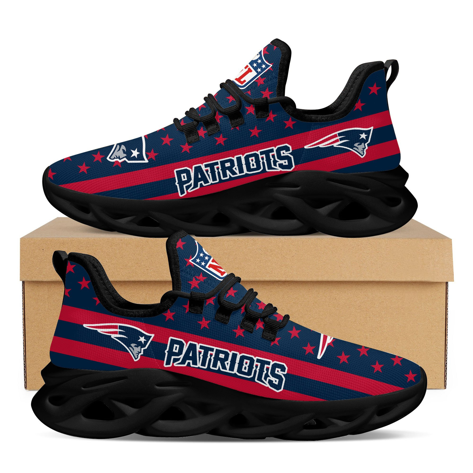 New England Patriots NFL Max Soul Shoes Sneakers Printed White And Black Sole For Men And Women
