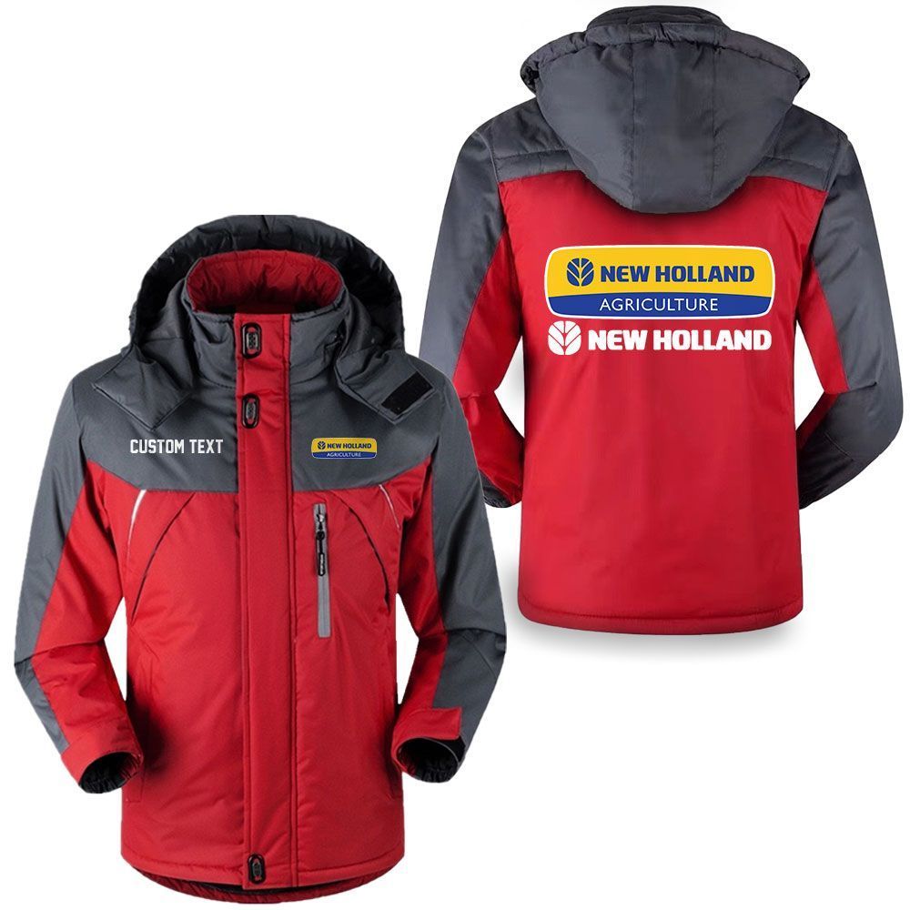New Holland Agriculture Logo Custom Name Hooded Windbreaker Ski Jacket
