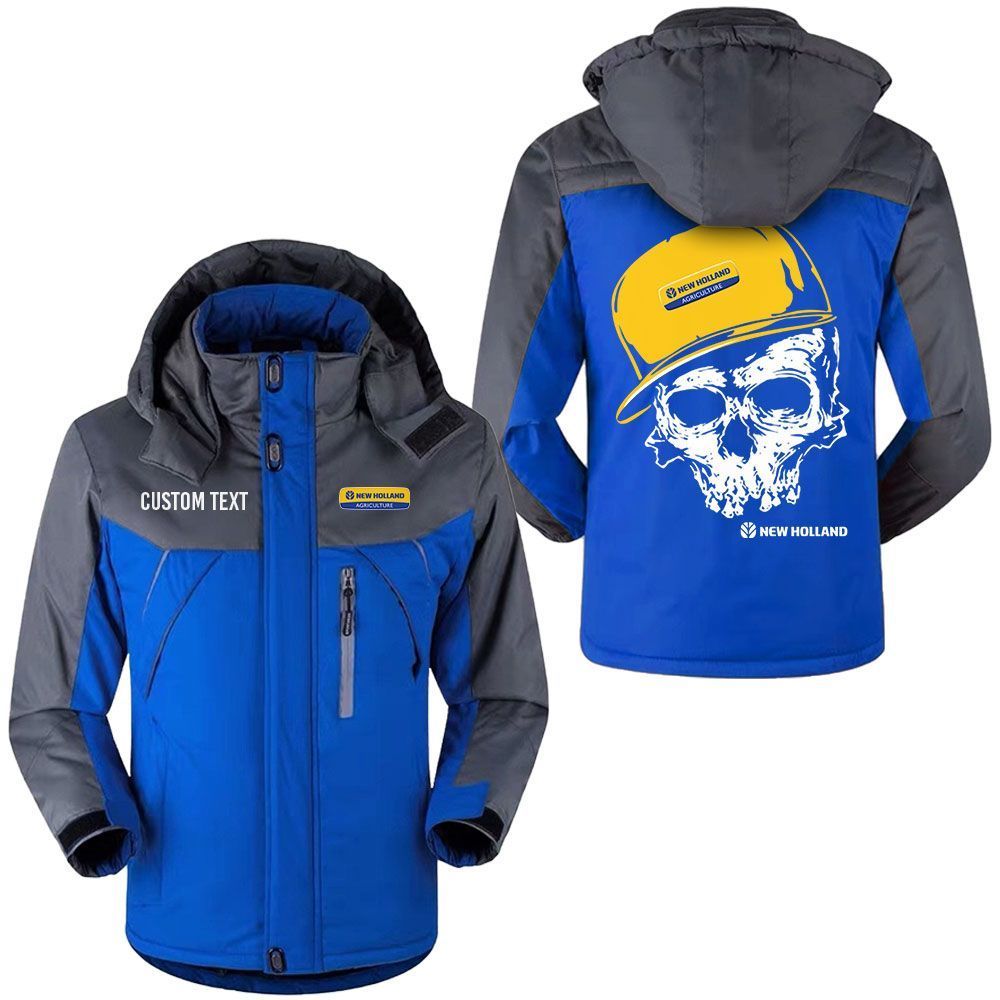 New Holland Agriculture Logo Custom Name Skull Design Hooded Windbreaker Ski Jacket