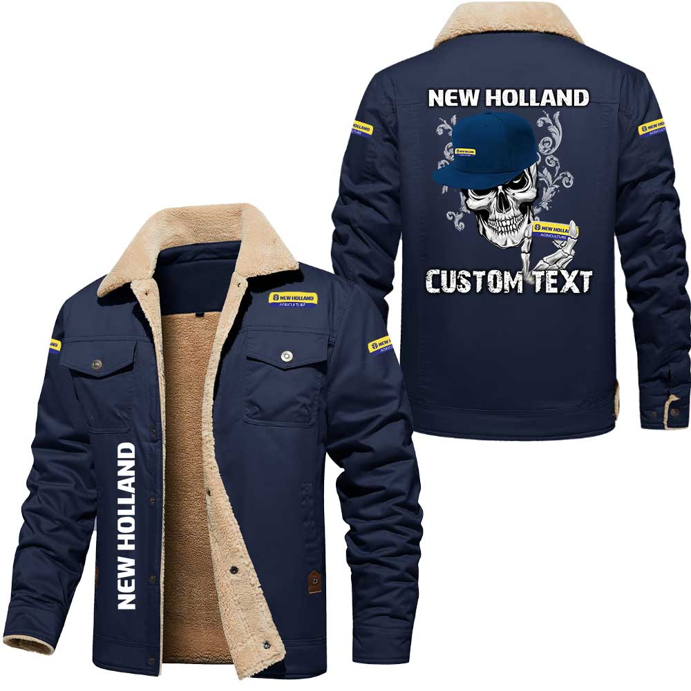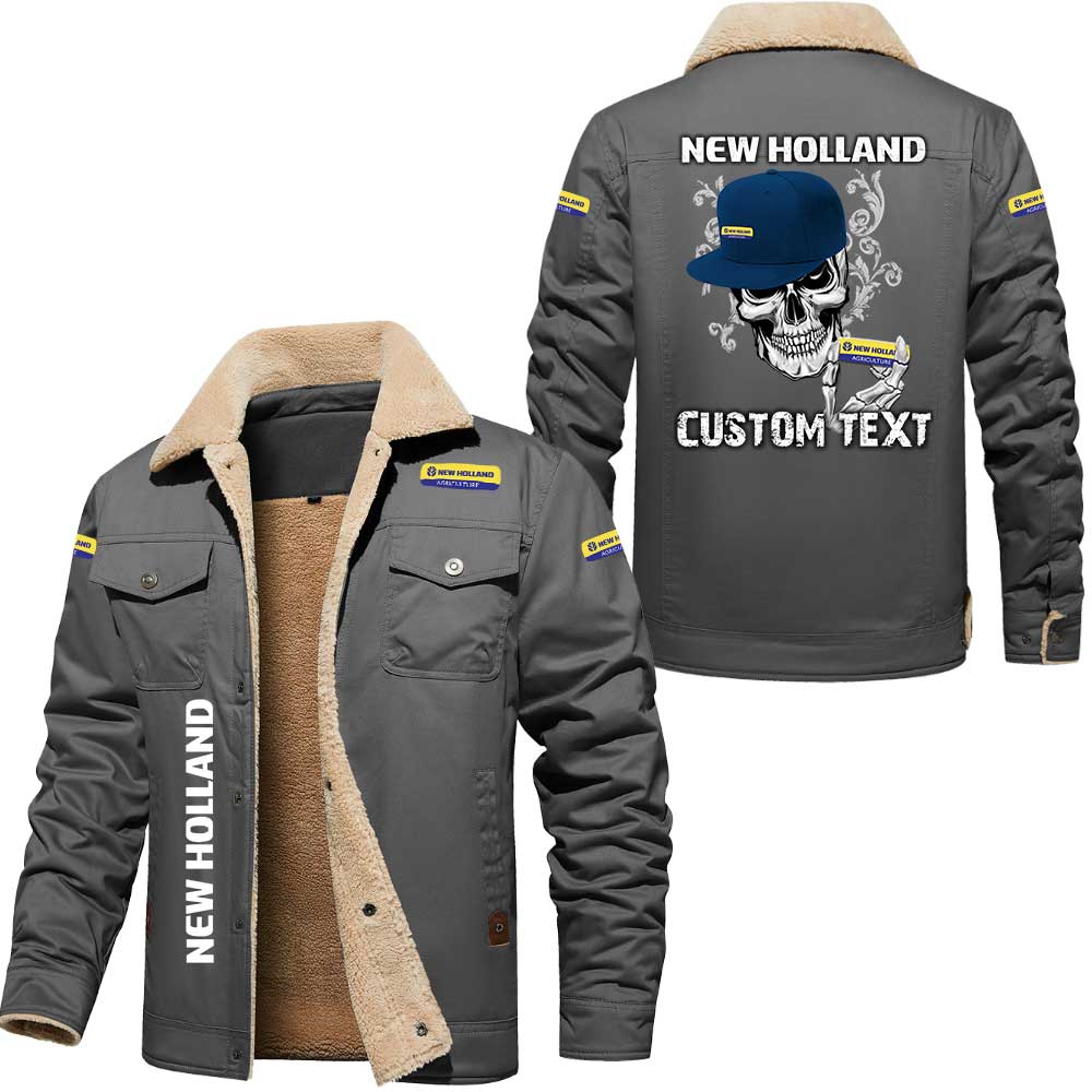 New Holland Skull Custom Name Cargo Fleece Lined Cotton Jacket