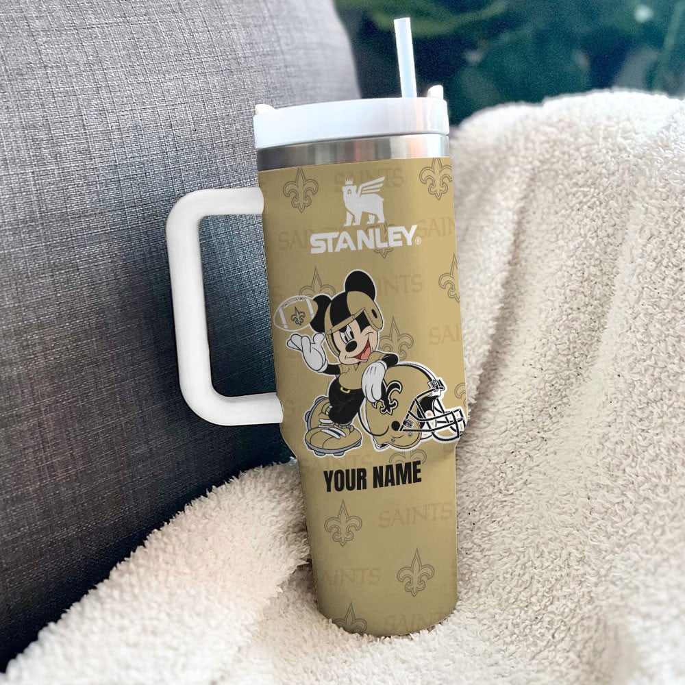 New Orleans Saints Nfl Mickey Mouse Custom Stanley Quencher 40Oz Stainless Steel Tumbler With Handle