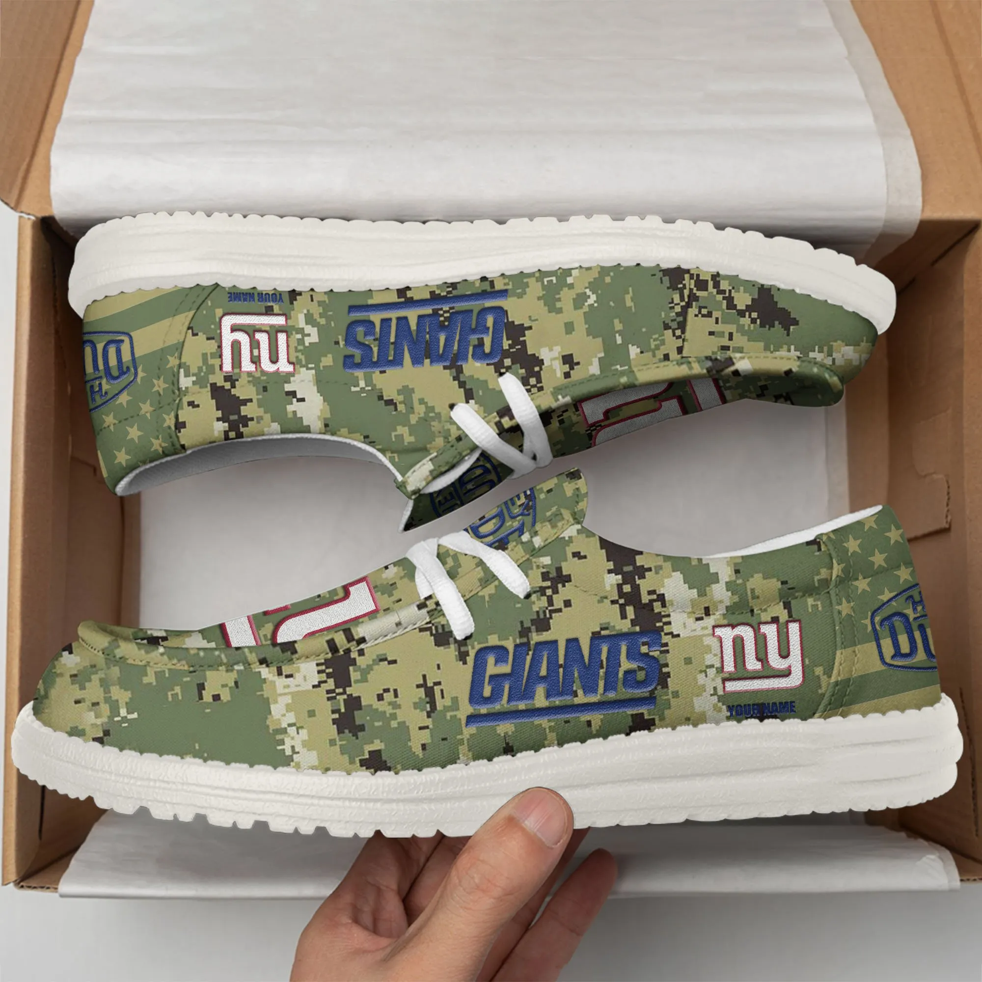 New York Giants 3D Print Dude Shoes Camo Green Best Gift For Sport Fan