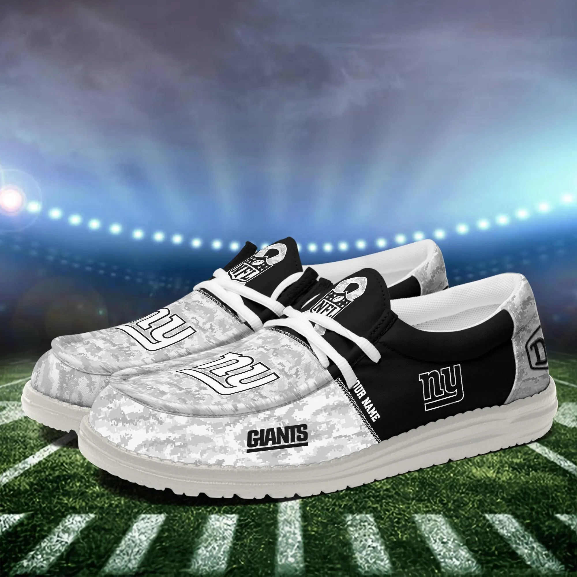 New York Giants Custom Name Dude Shoes Grey