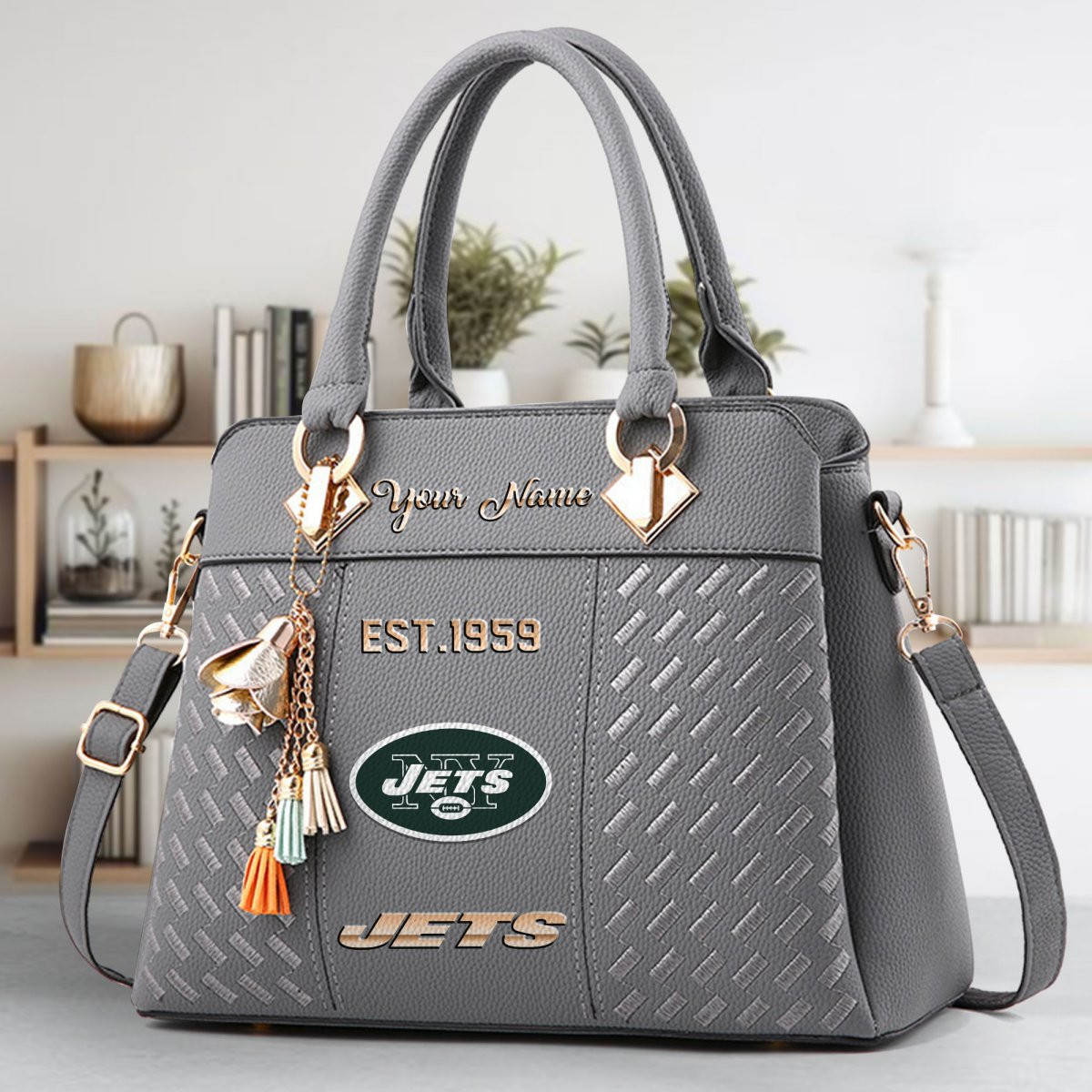 New York Jets Crossbody Zip Handbag With Tassel Custom Name For Women