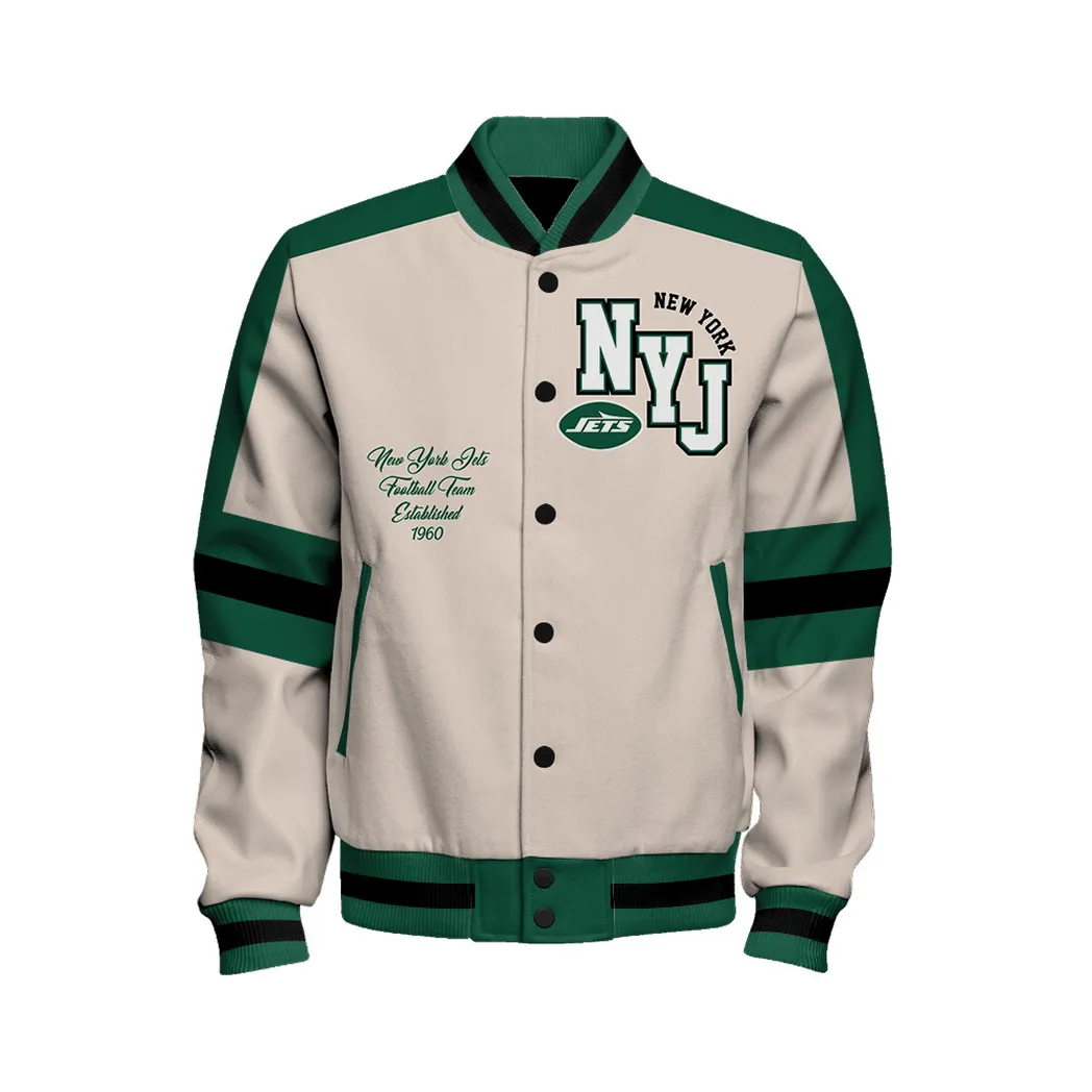 New York Jets Sky Army Baseball Jacket Daily Sport Fan Jacket NFL