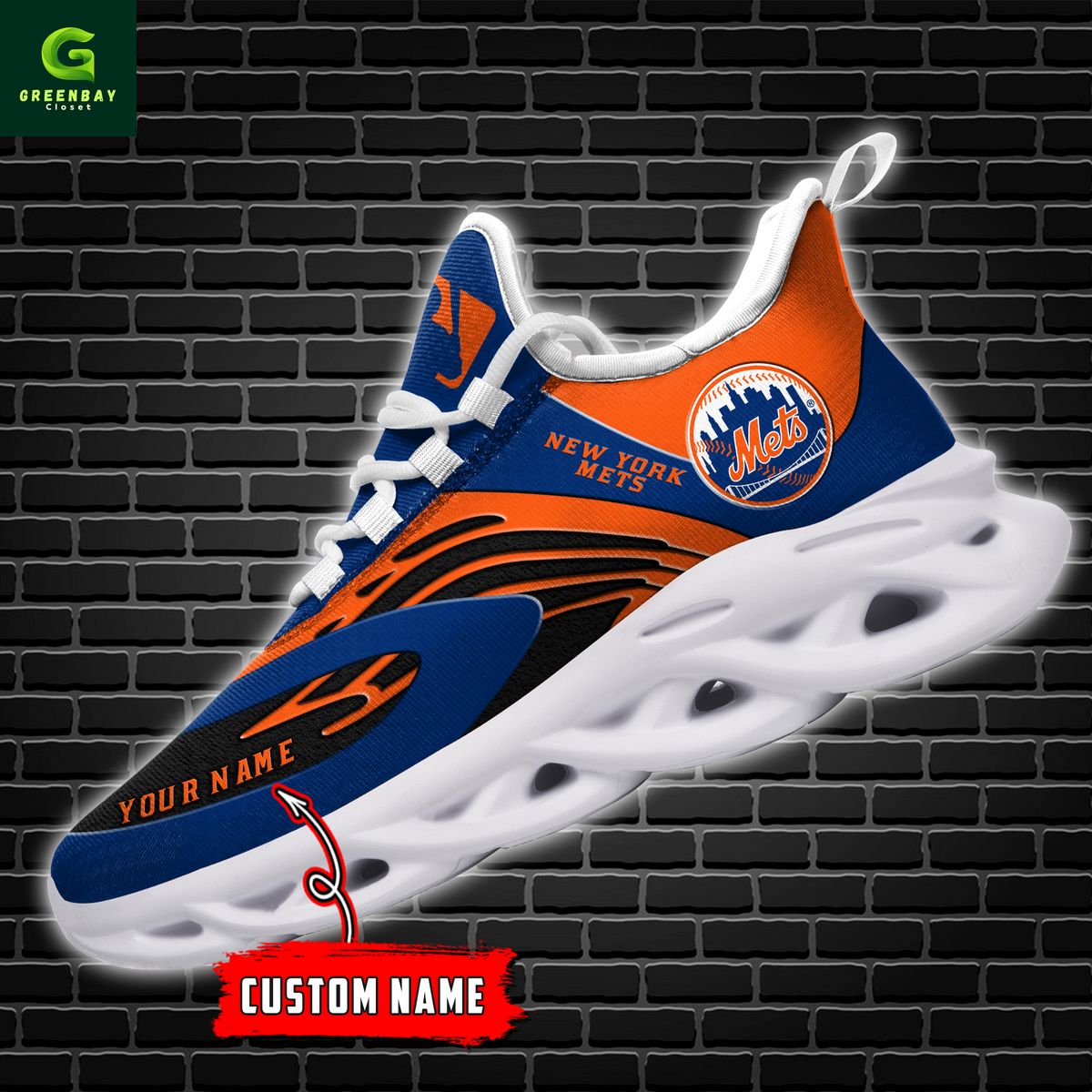 New York Mets Max Soul Shoes Sneakers Printed White And Black Sole For Men And Women