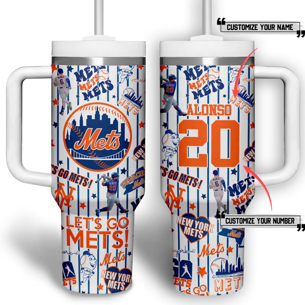 New York Mets Mlb Custom Stanley Quencher 40Oz Stainless Steel Tumbler