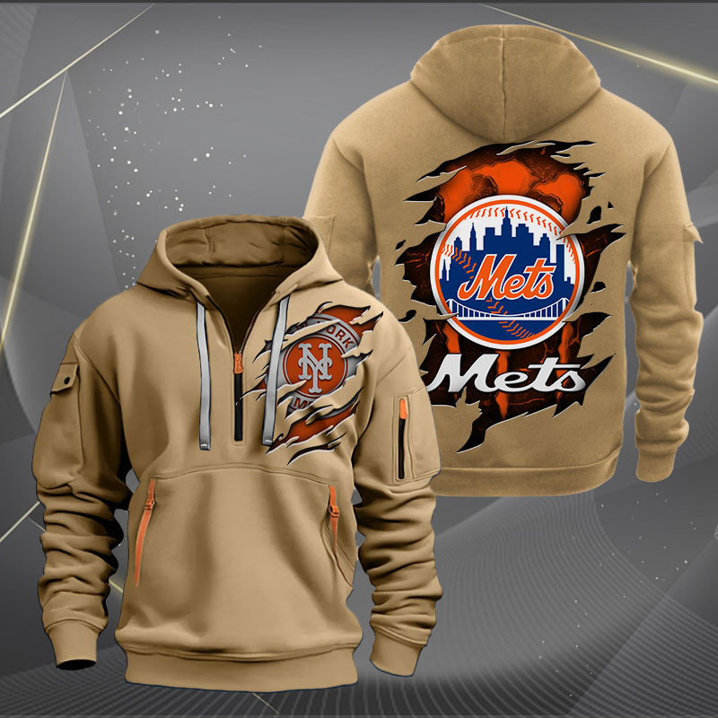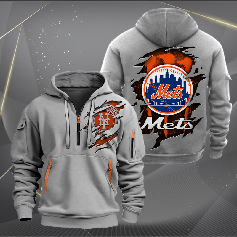 New York Mets MLB Sport Logo Quarter Zip Hoodie