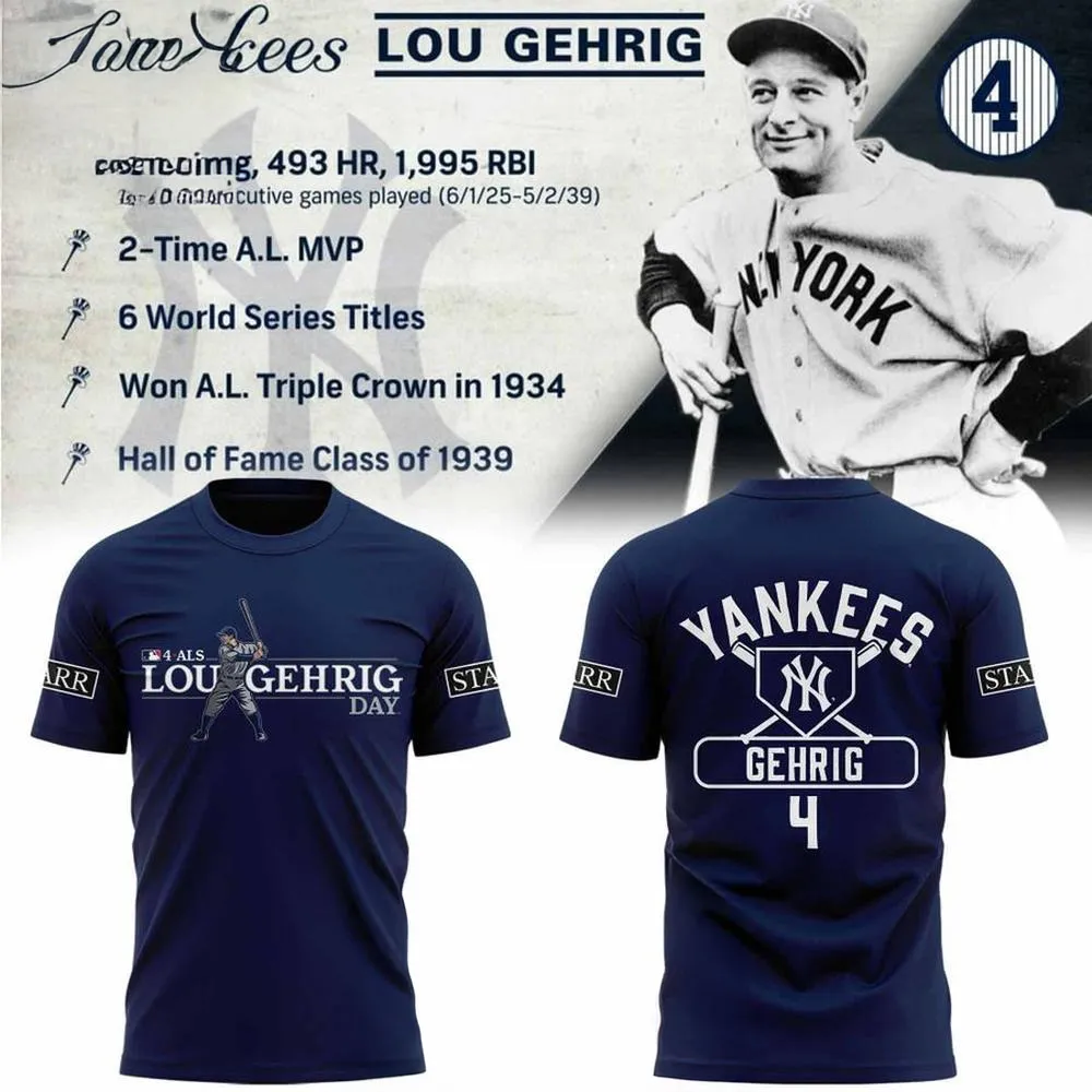 New York Yankees x 2025 Lou Gehrig Day T-Shirt Gift For Sport Music Fans