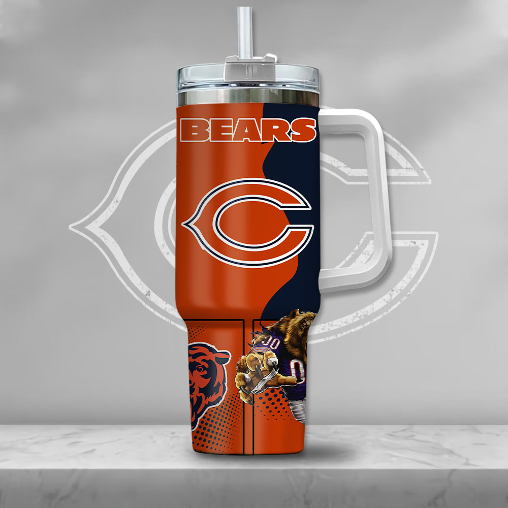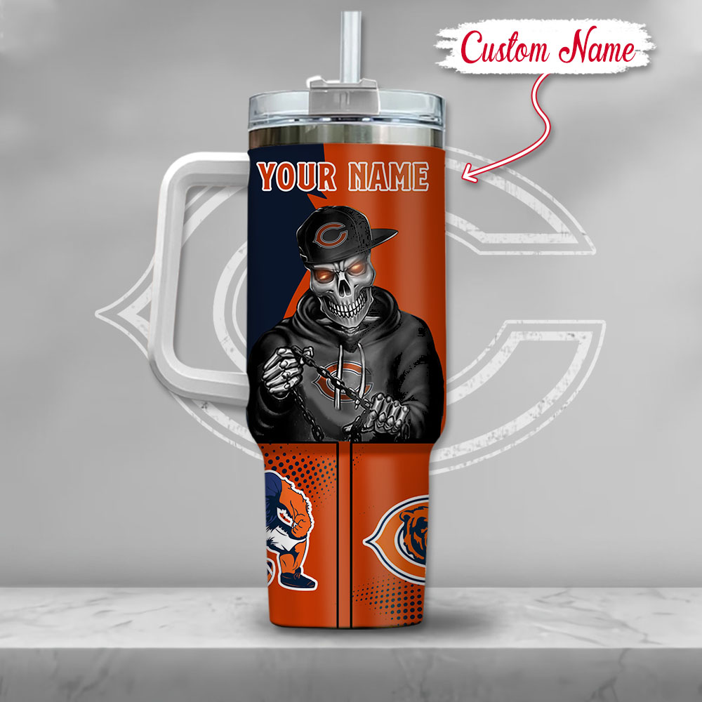 Nfl Chicago Bears Gangster Skeleton Custom Stanley Quencher 40Oz Stainless Steel Tumbler With Handle