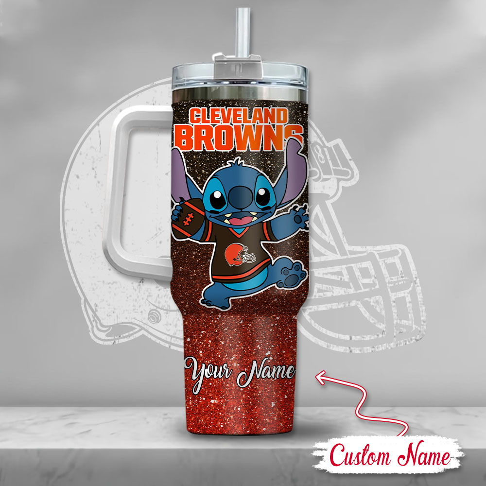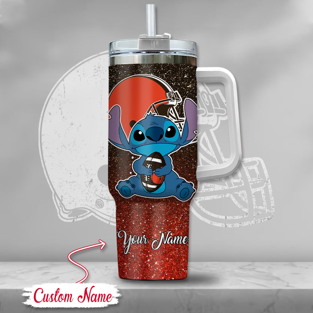 Nfl Cleveland Browns Stitch Glitter Custom Stanley Quencher 40Oz Stainless Steel Tumbler With Handle