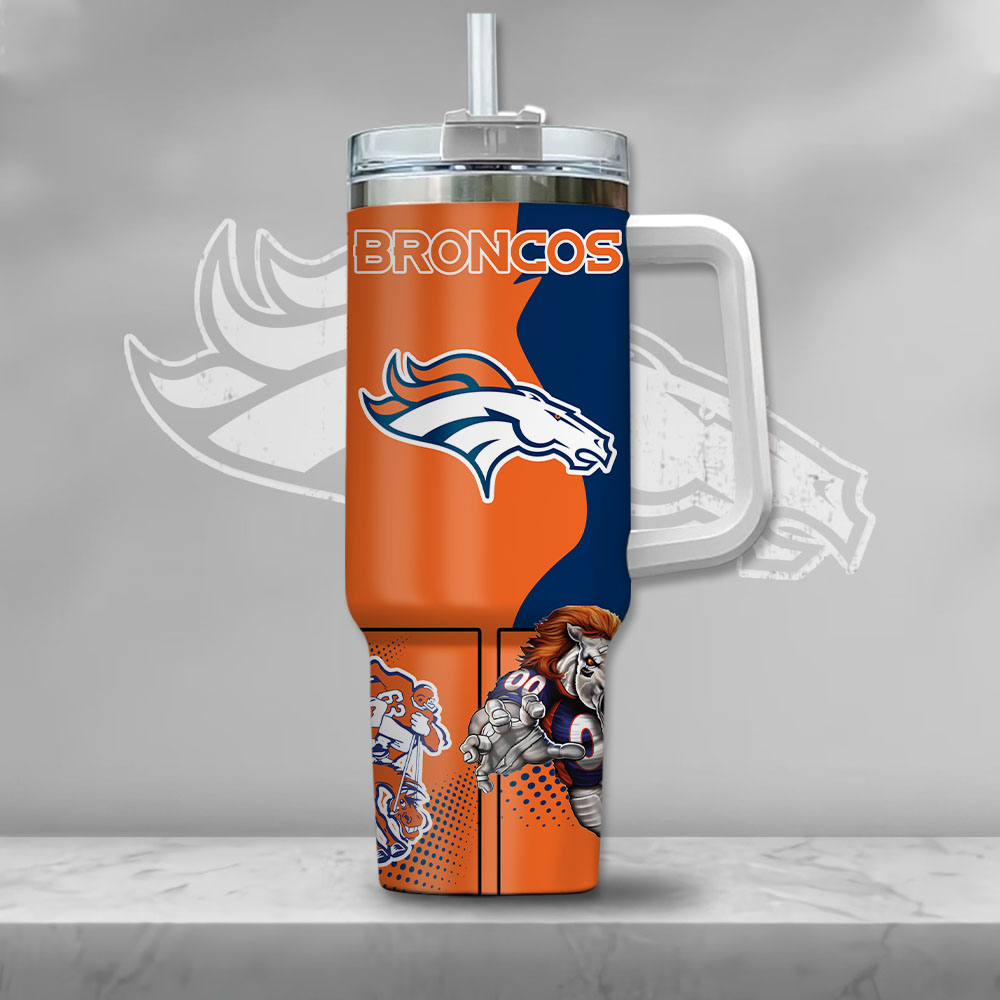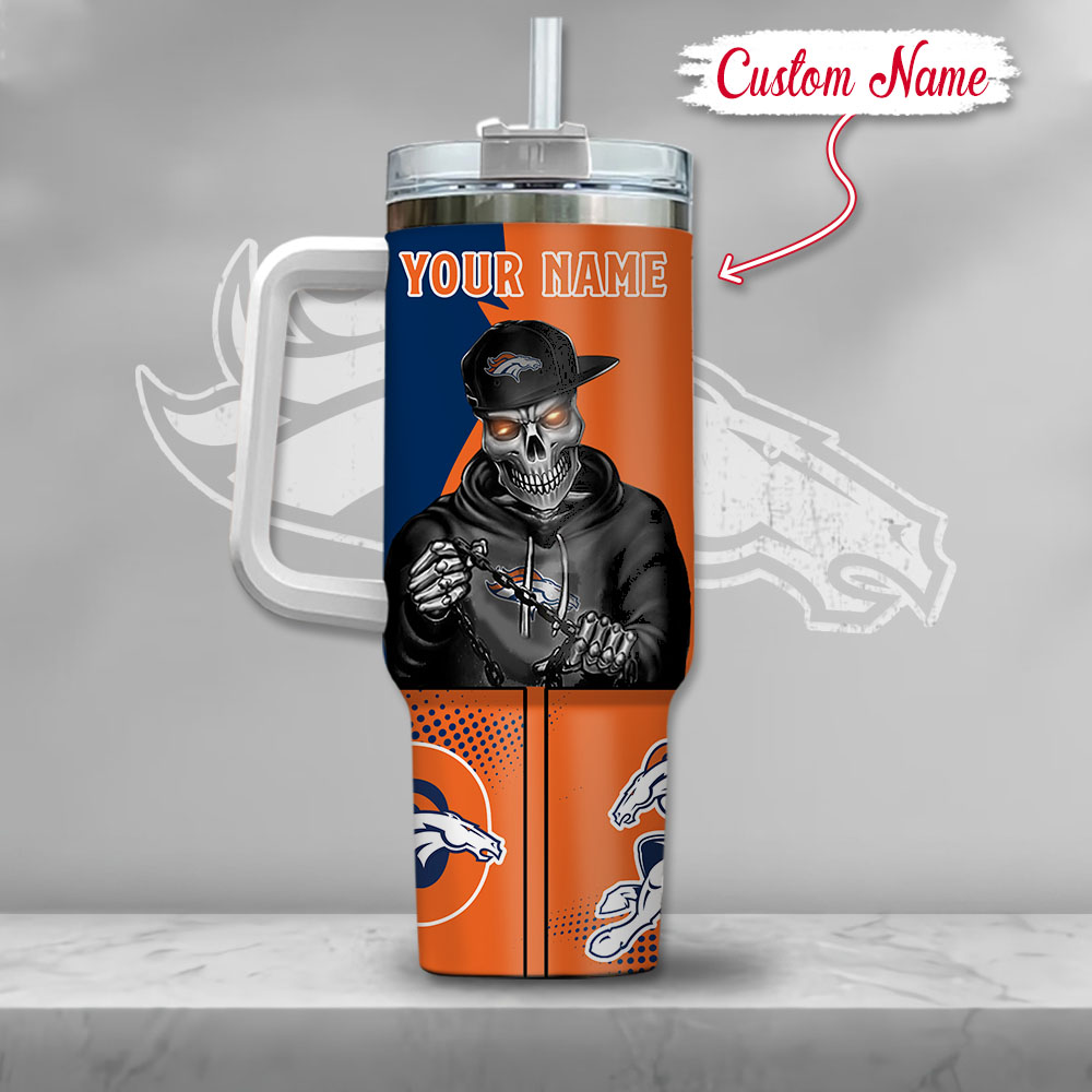 Nfl Denver Broncos Gangster Skeleton Custom Stanley Quencher 40Oz Stainless Steel Tumbler With Handle