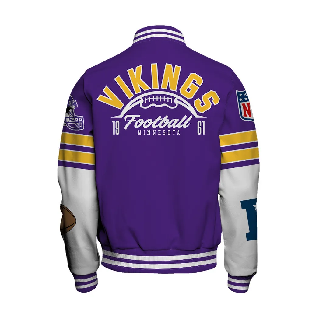 NFL Football Viking Crew Baseball Jacket Game-Day Varsity Outerwear NFL