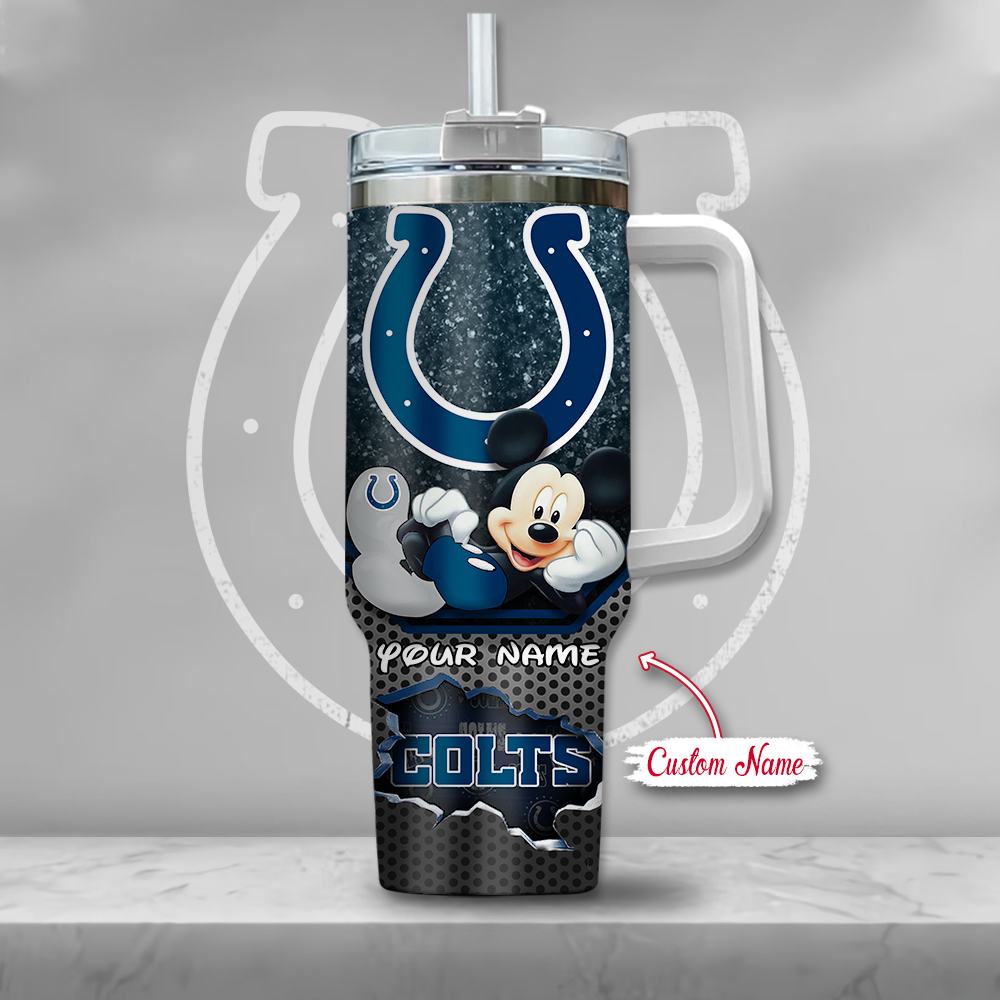 Nfl Indianapolis Colts Mickey Mouse Custom Stanley Quencher 40Oz Stainless Steel Tumbler With Handle