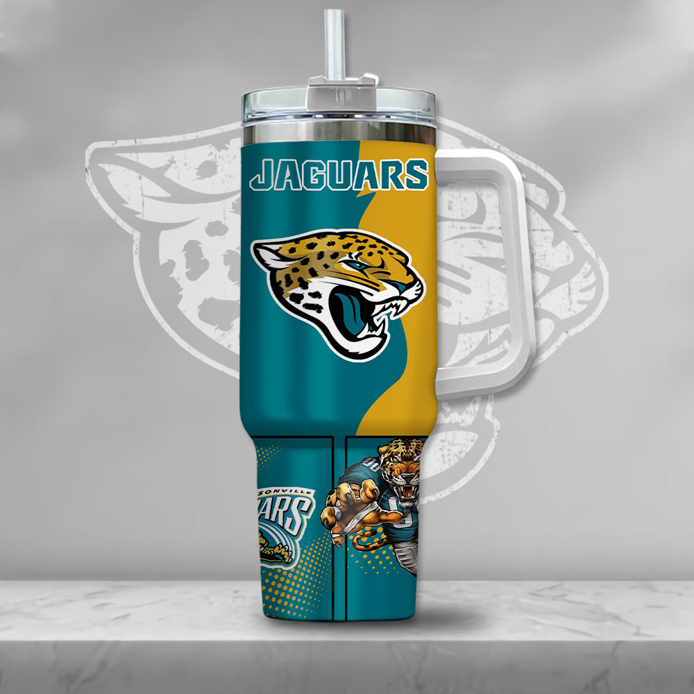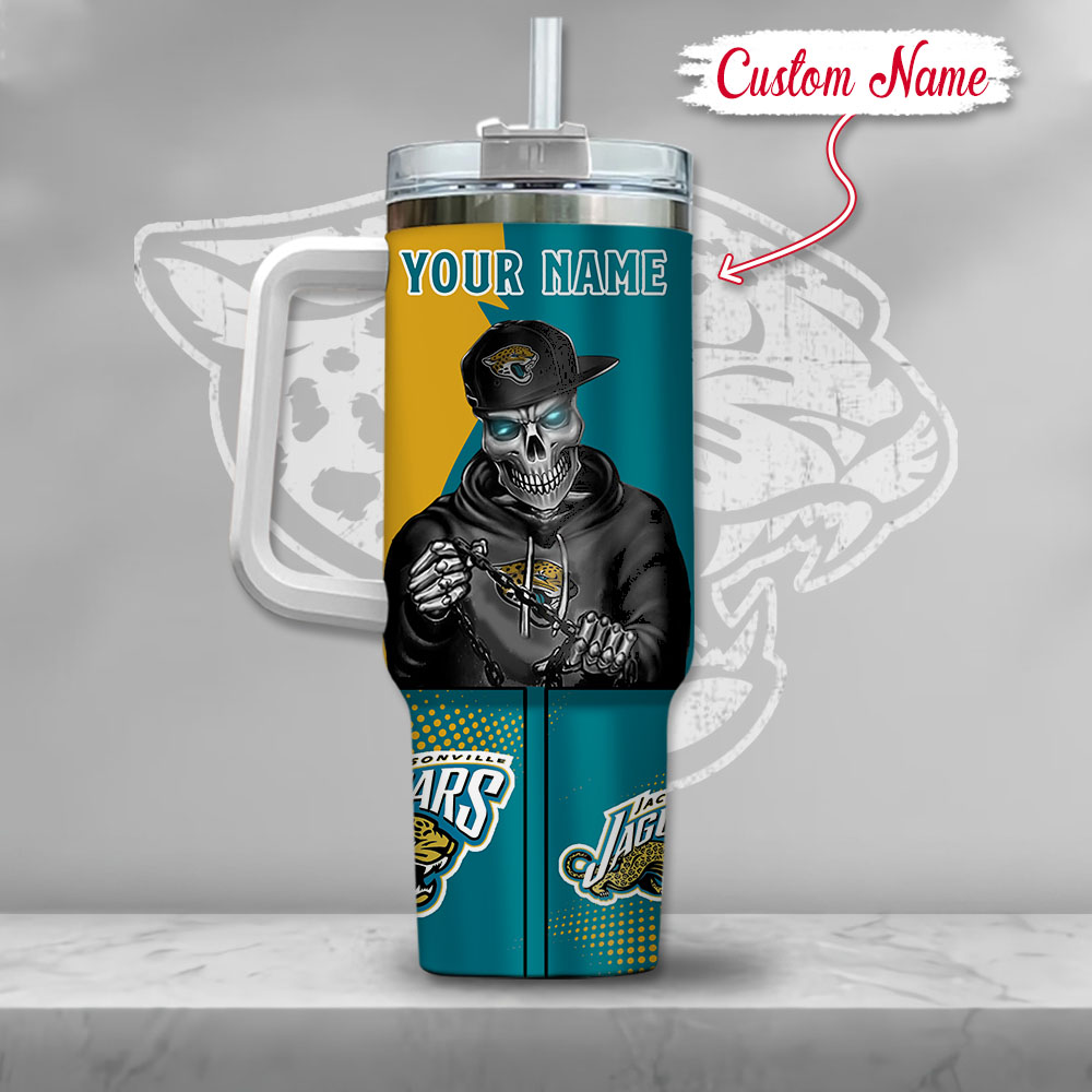 Nfl Jacksonville Jaguars Gangster Skeleton Custom Stanley Quencher 40Oz Stainless Steel Tumbler With Handle