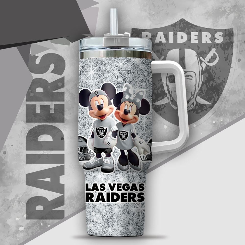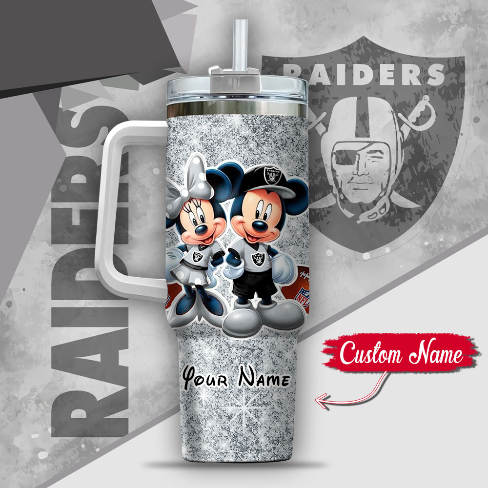Nfl Las Vegas Raiders Mickey And Minnie Couple Custom Stanley Quencher 40Oz Stainless Steel Tumbler With Handle