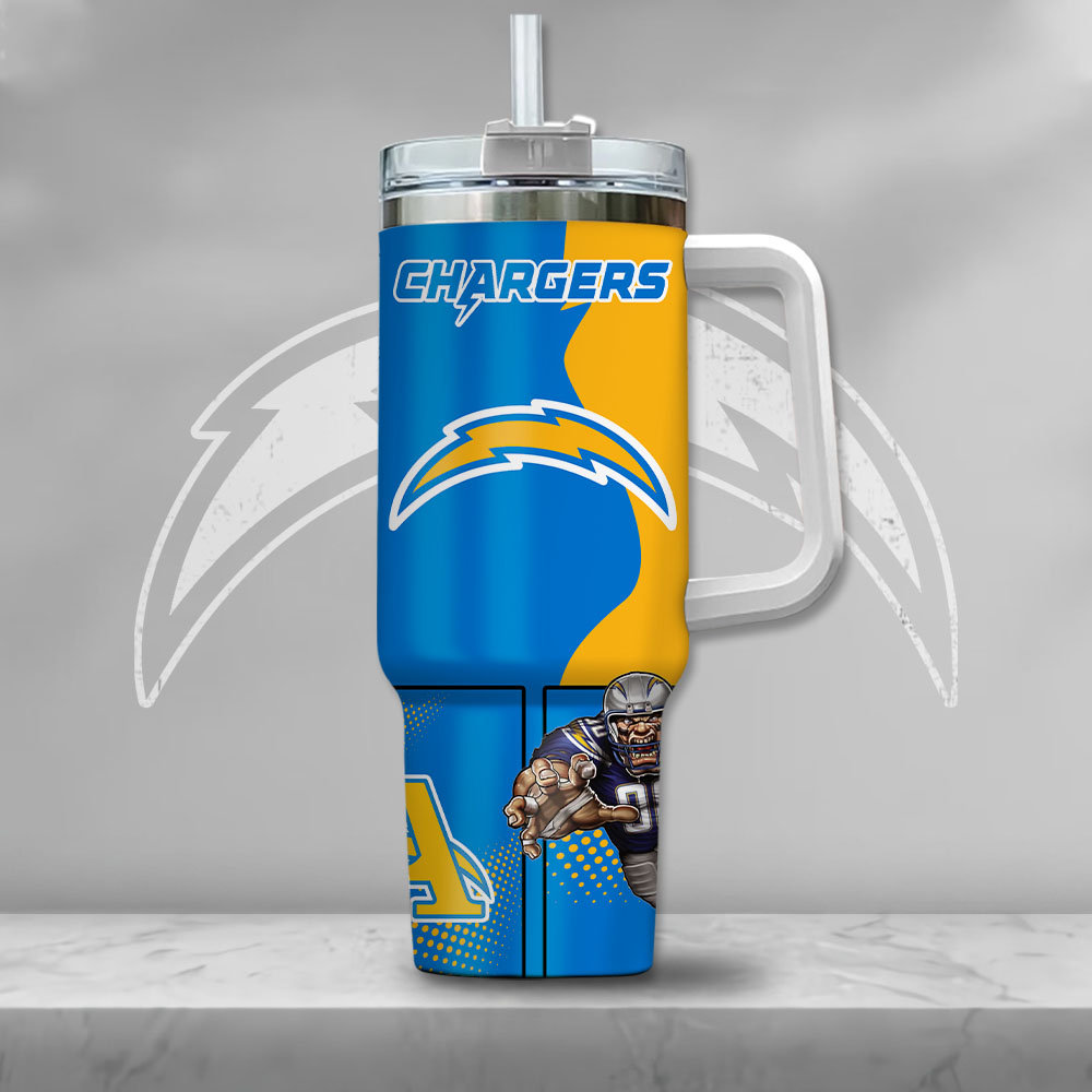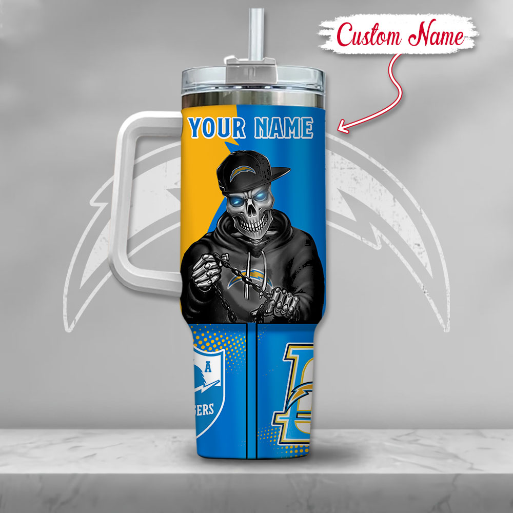 Nfl Los Angeles Chargers Gangster Skeleton Custom Stanley Quencher 40Oz Stainless Steel Tumbler With Handle