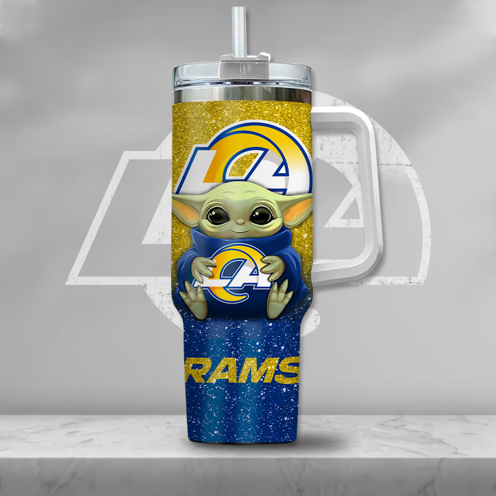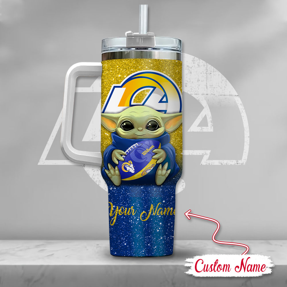 Nfl Los Angeles Rams Baby Yoda Custom Stanley Quencher 40Oz Stainless Steel Tumbler With Handle