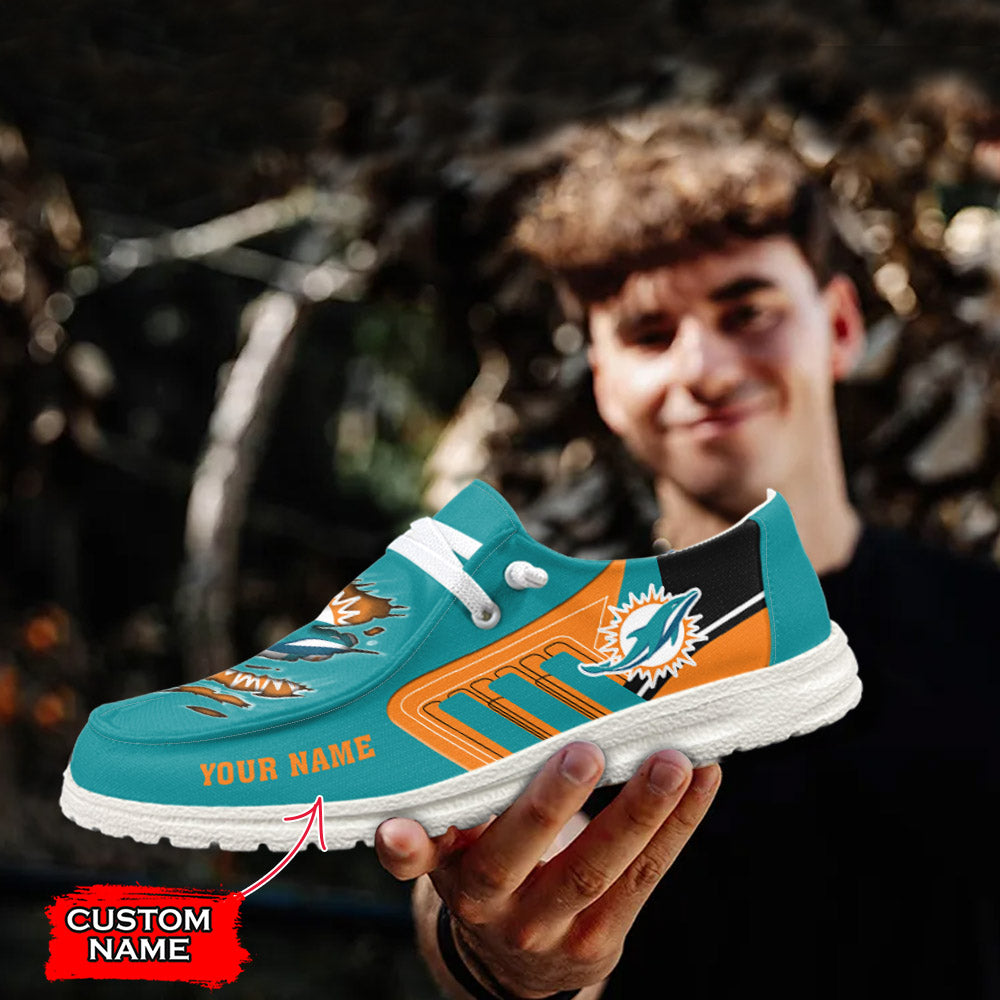 Nfl Miami Dolphins Custom Name Dude Shoes Casual For Men And Women