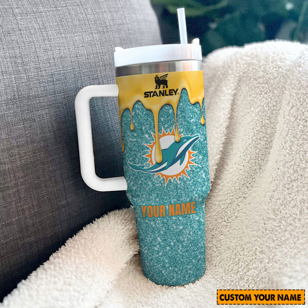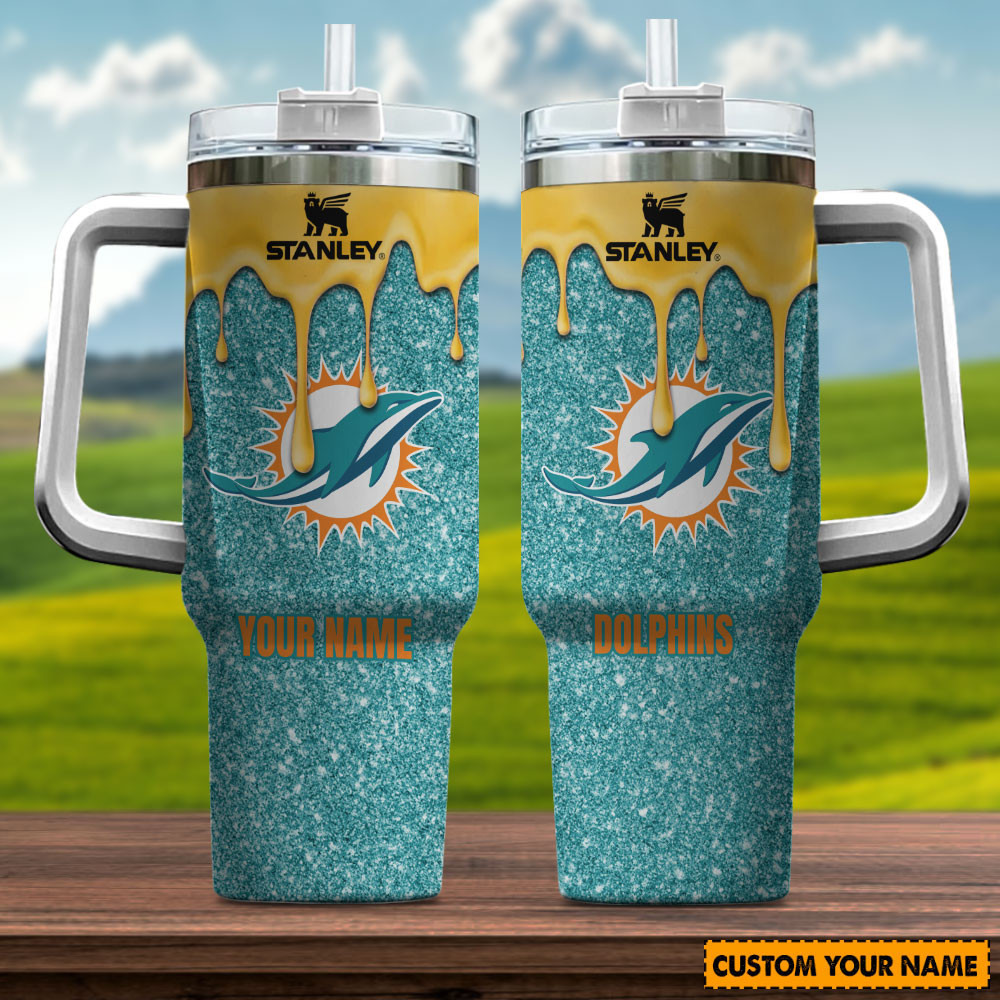 Nfl Miami Dolphins Custom Stanley Quencher 40Oz Stainless Steel Tumbler With Handle