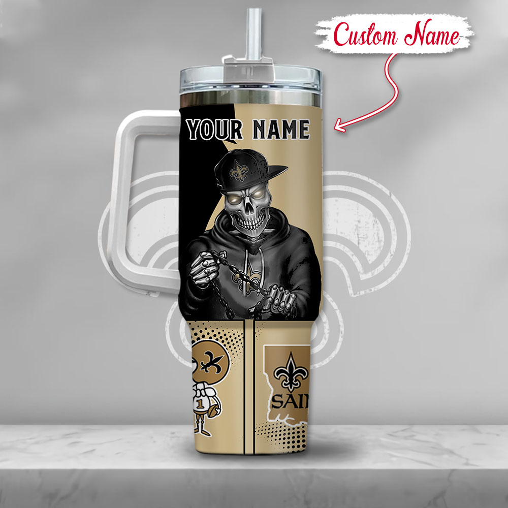 Nfl New Orleans Saints Gangster Skeleton Custom Stanley Quencher 40Oz Stainless Steel Tumbler With Handle