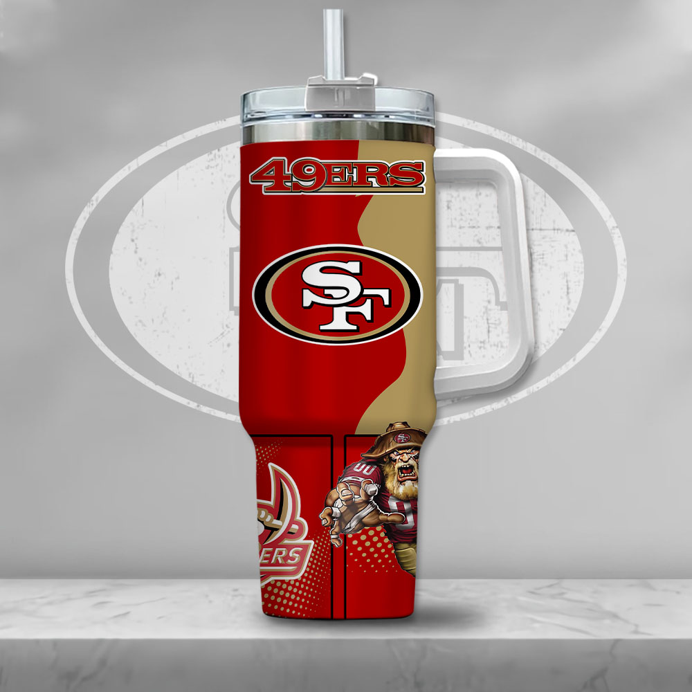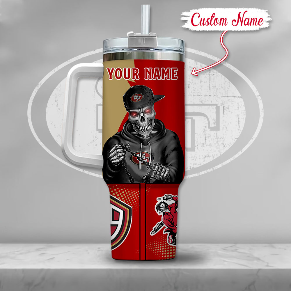 Nfl San Francisco 49Ers Gangster Skeleton Custom Stanley Quencher 40Oz Stainless Steel Tumbler With Handle